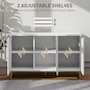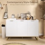 Elevate your home's elegance with the HOMCOM 3-door cabinet, a chic sideboard that blends seamlessly into any decor. Its luxurious golden base and hardware add a touch of glam, while the three-door cabinets with adjustable shelves provide ample space for all your essentials, from kitchen supplies to coffee bar utensils. The sleek design ensures both style and functionality for everyday use.Features: