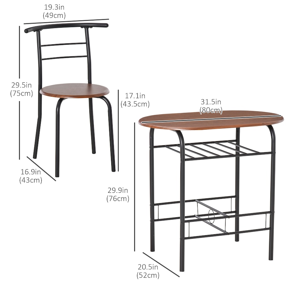 ● Overall Dimensions: 31.5" L x 20.5" W x 29.9" H (80 x 52 x 76 cm) (table), 19.3" L x 16.9" W x 29.5" H (49 x 43 x 75 cm) (chair);