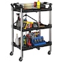3-Tier Collapsible Tool Cart with Wheels, Folding Utility Cart Black