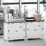 ● A large drawer fits legal, letter, and A4 files, a middle drawer for letter and A4, plus two small drawers for supplies;