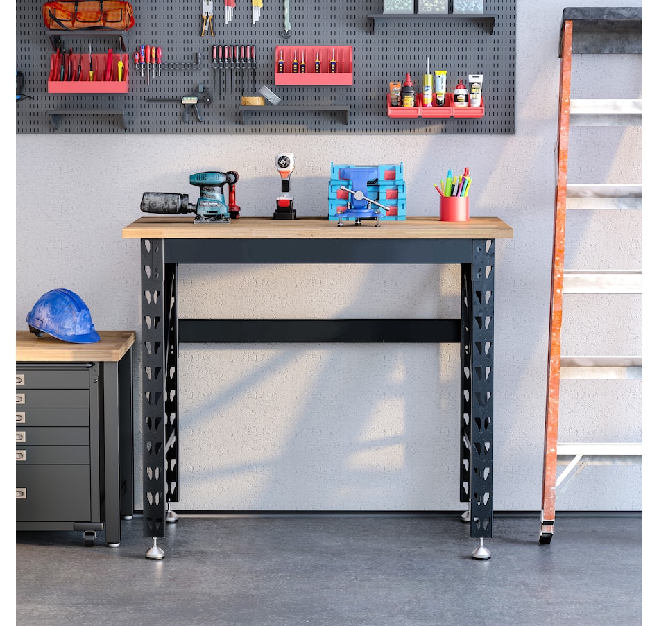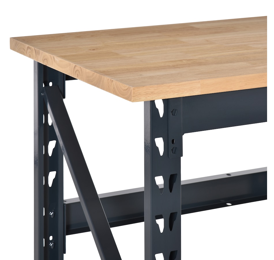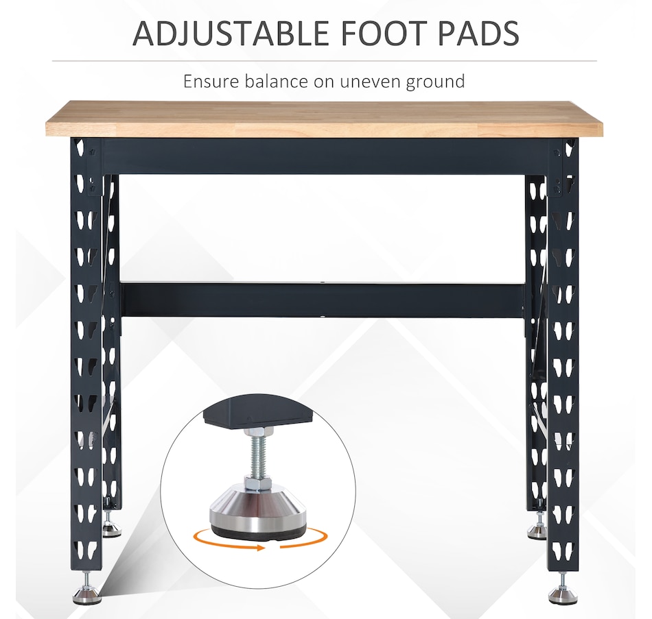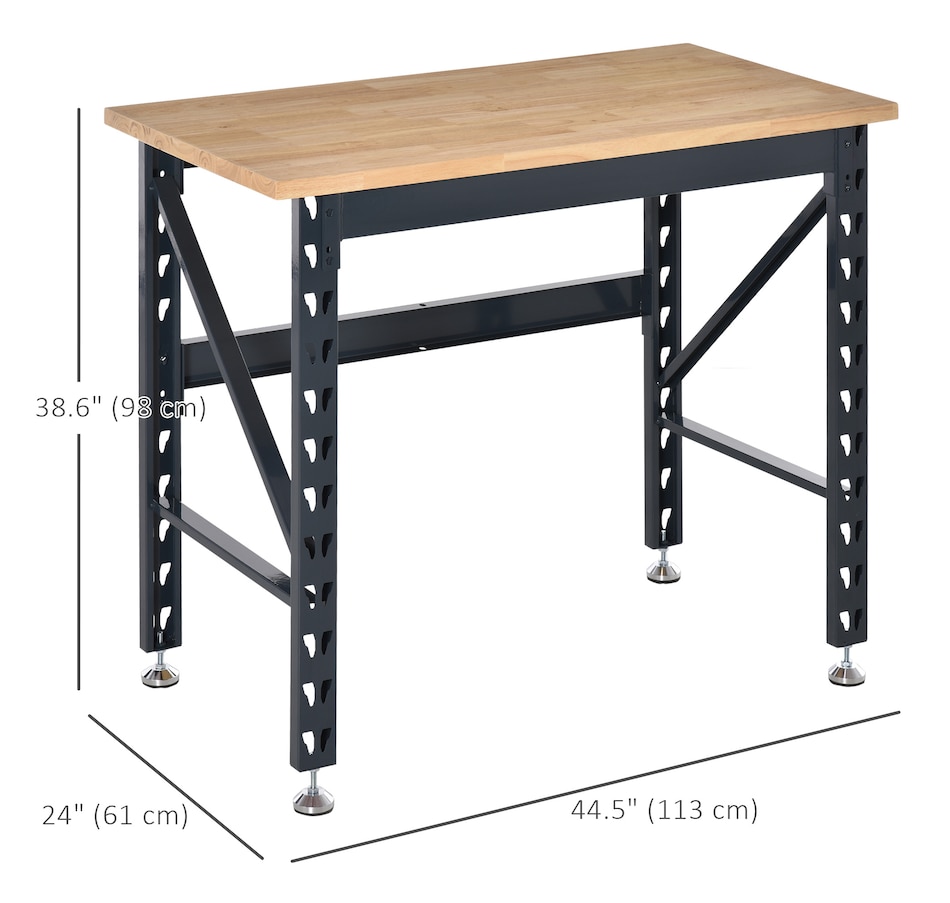 Reinvigorate your garage workspace with this HOMCOM workbench. The work surface is made from heavy-duty solid wood and measures 1.25" thick for maximum sturdiness. Designed with solid steel legs, this standing table can handle all tasks from daily use to heavy-duty projects. Choose HOMCOM work bench to make your job much easier!Features: