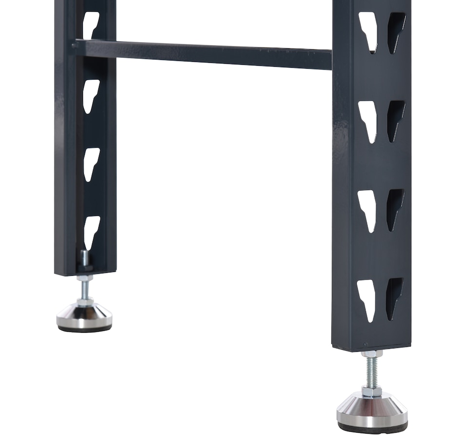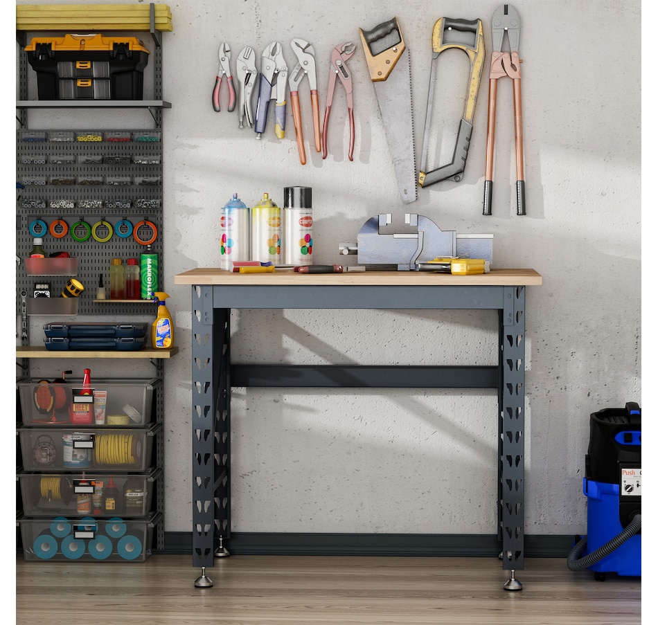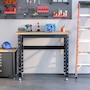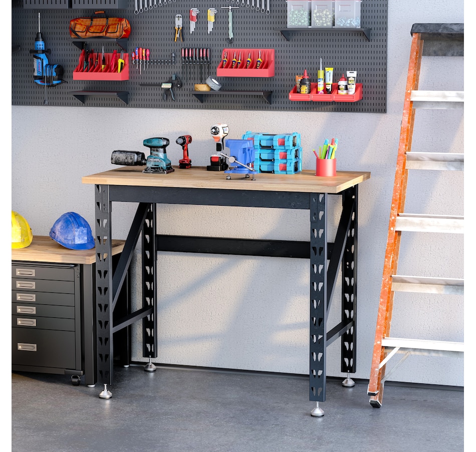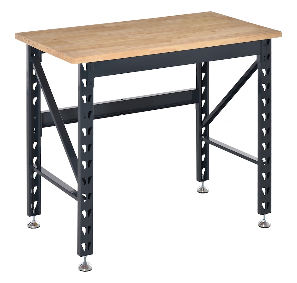 Reinvigorate your garage workspace with this HOMCOM workbench. The work surface is made from heavy-duty solid wood and measures 1.25" thick for maximum sturdiness. Designed with solid steel legs, this standing table can handle all tasks from daily use to heavy-duty projects. Choose HOMCOM work bench to make your job much easier!Features: