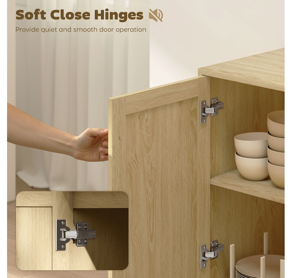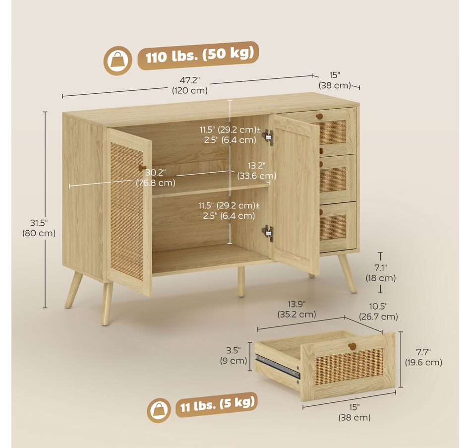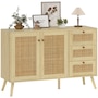 47" Rattan Sideboard Buffet Cabinet with Soft-Close Doors, Natural