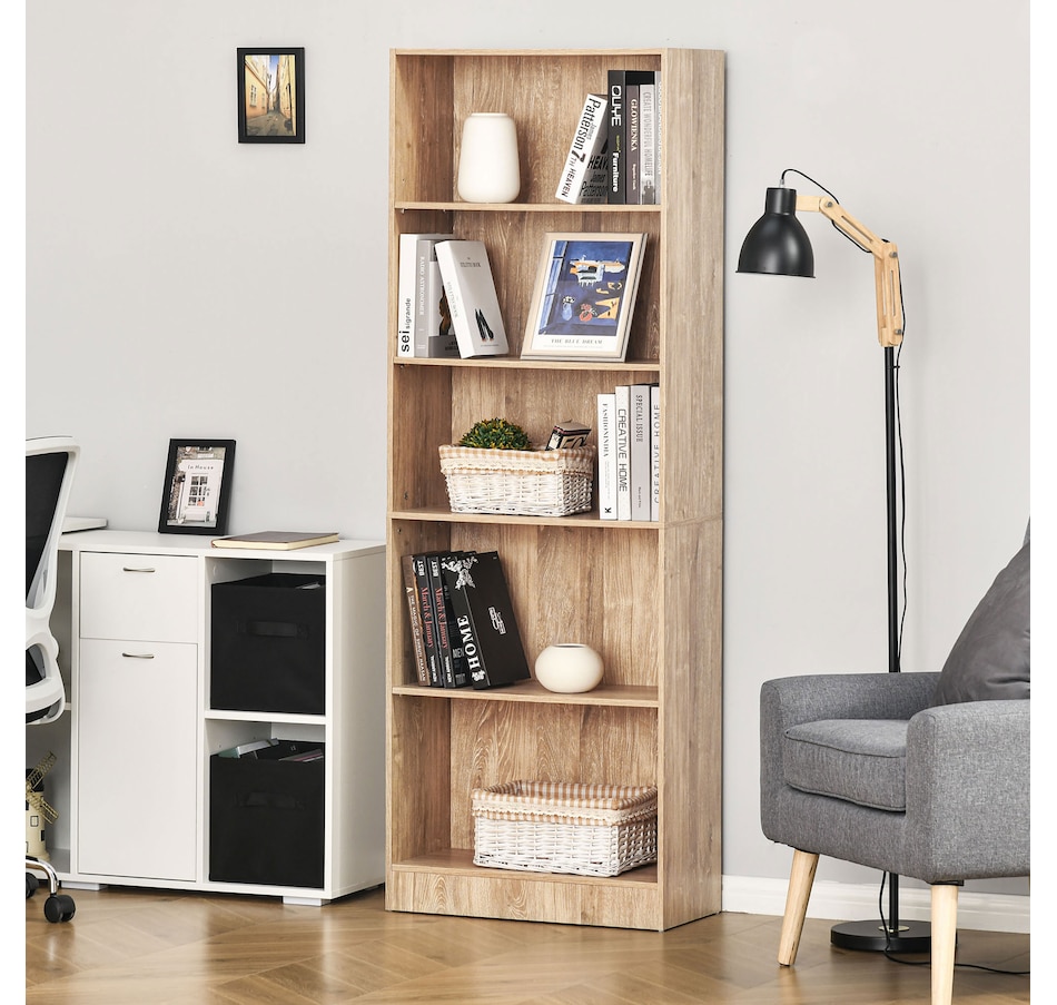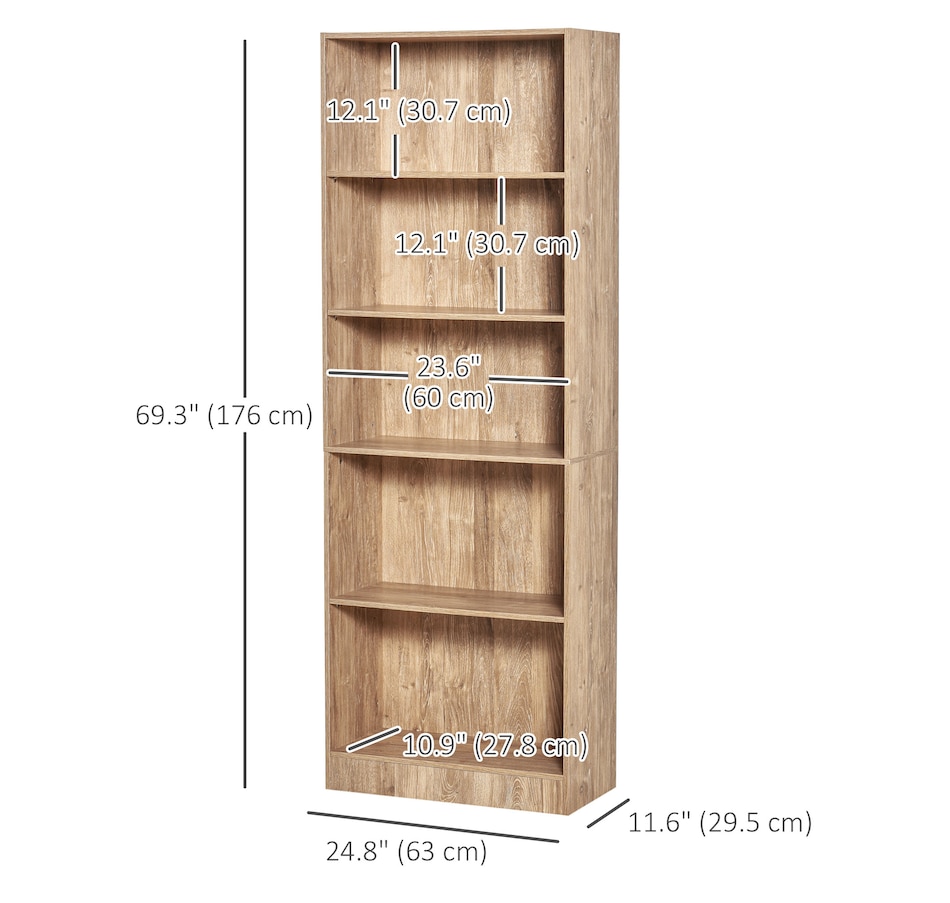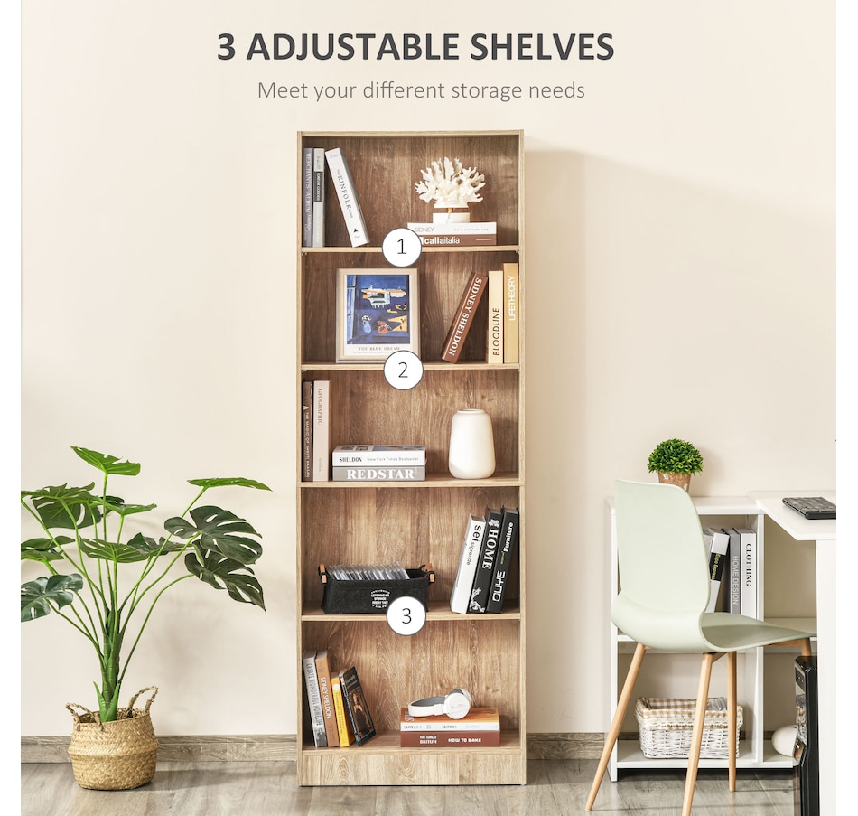 Use this 5-tier storage shelf to solve your problem of limited space. It can be used for various purposes, including living room shelves, office bookcases, children's furniture, family room media storage, and more. The shelves' height can be adjusted, allowing you to create your storage and display space for items of various sizes. Choose this bookshelf to help you keep your home neat.Features:
