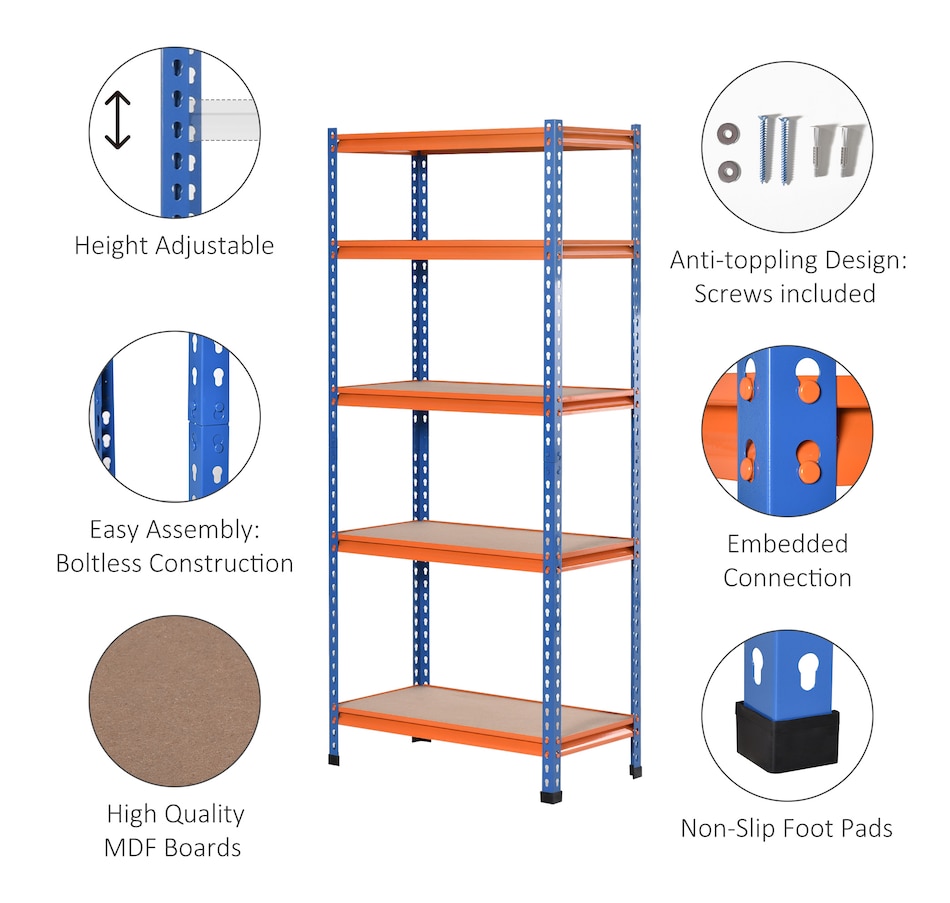 ● Features 5 shelves for storing goods, tools, books, sundries, etc.;