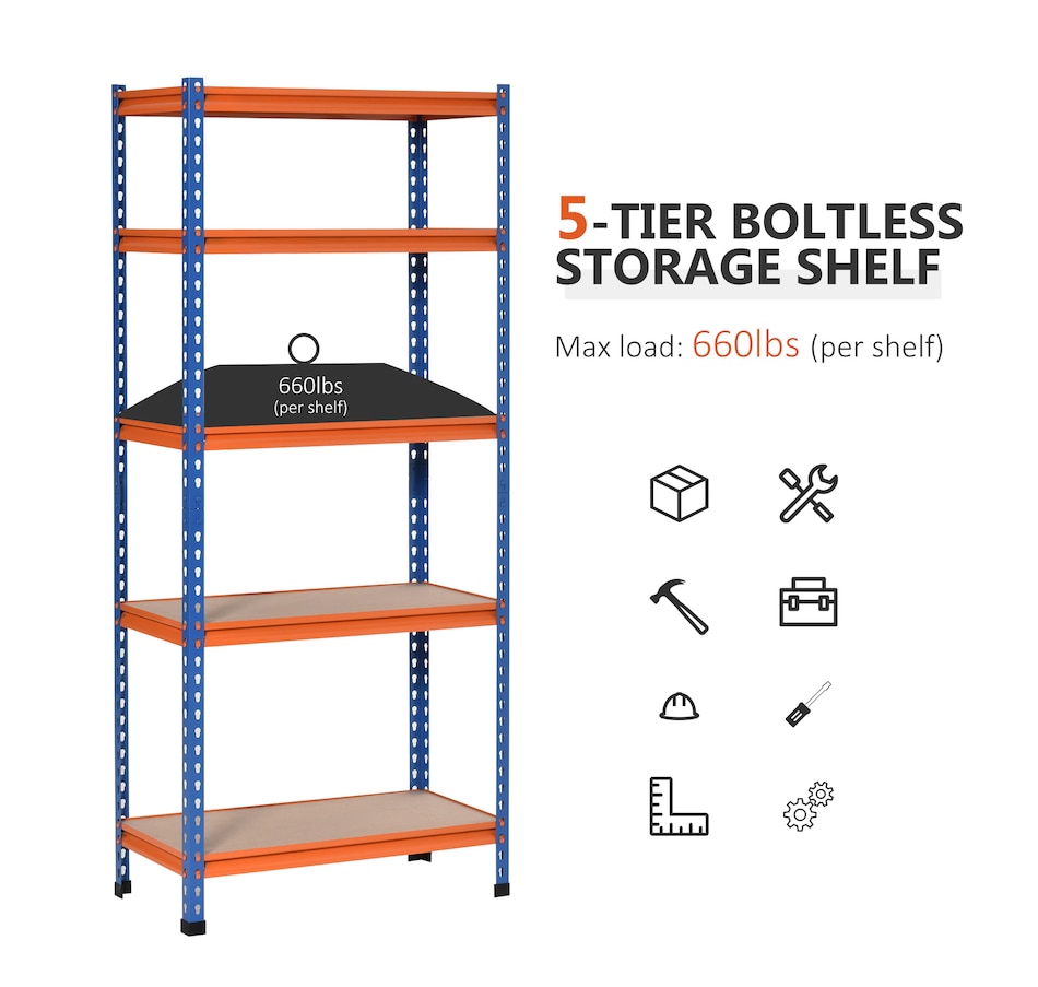 5-Tier Garage Shelf, Heavy Duty Storage Rack with Adjustable Shelves