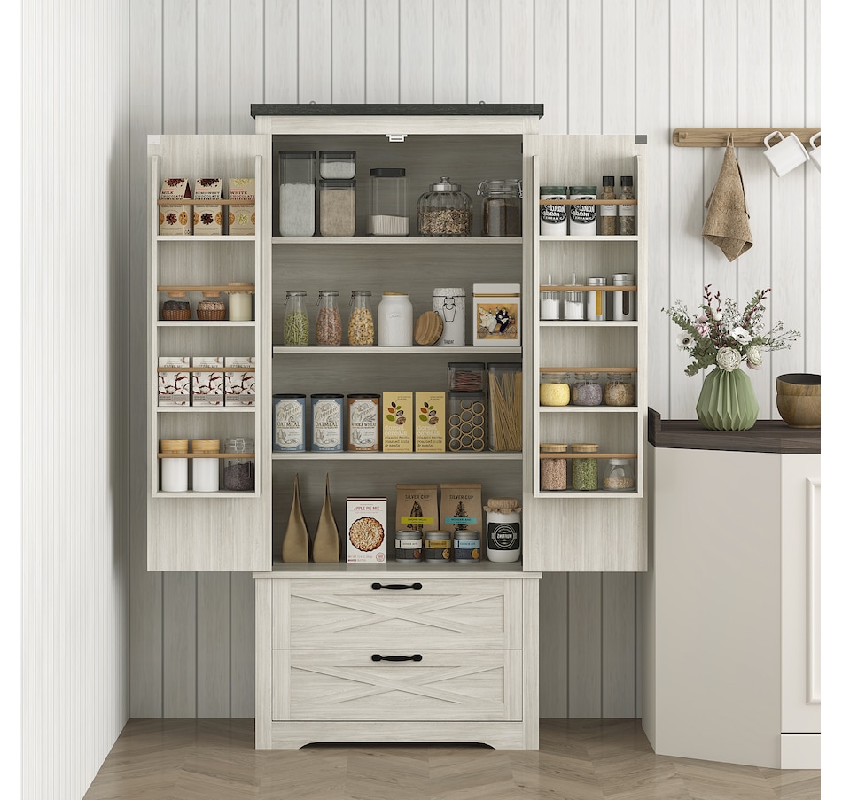 64" Kitchen Pantry Cabinet Storage Cabinet with Doors Drawers, White