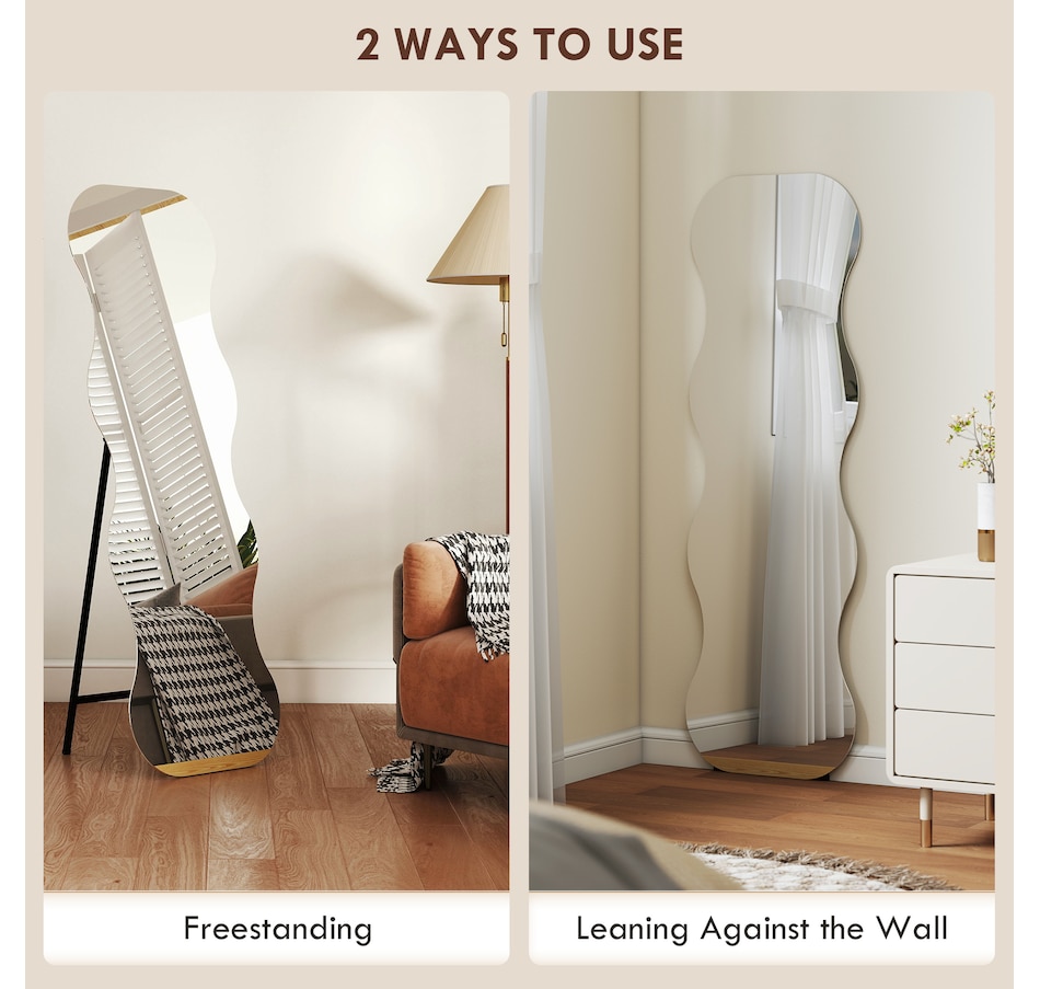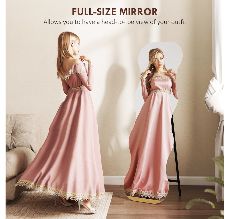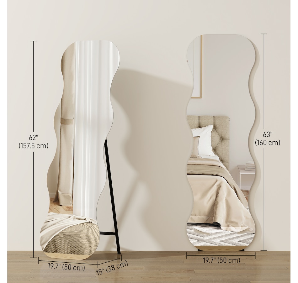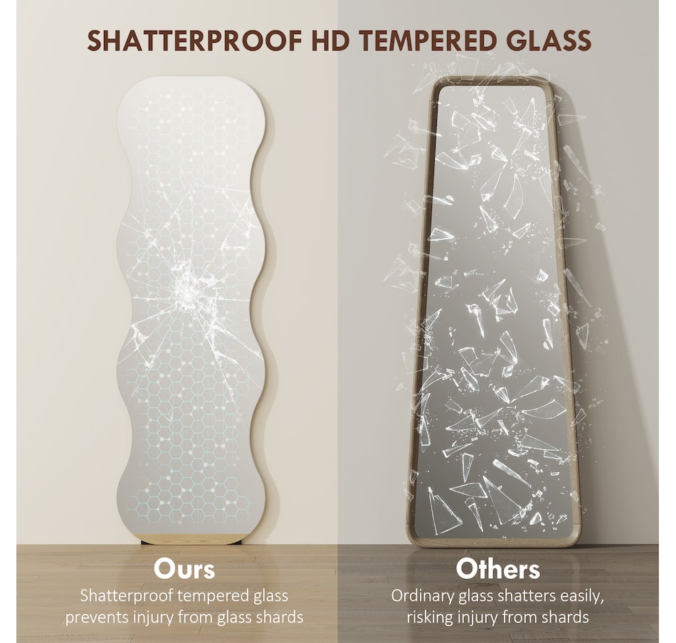 Tired of worrying about fragile mirrors in a busy household? The fear of a shatter can overshadow the joy of getting ready. This HOMCOM standing mirror offers peace of mind with its shatterproof tempered glass. The elegant, frameless arch design of this full length mirror provides a complete head-to-toe view, blending safety with sophisticated style, so your family's well-being and your daily routine are both beautifully cared for.