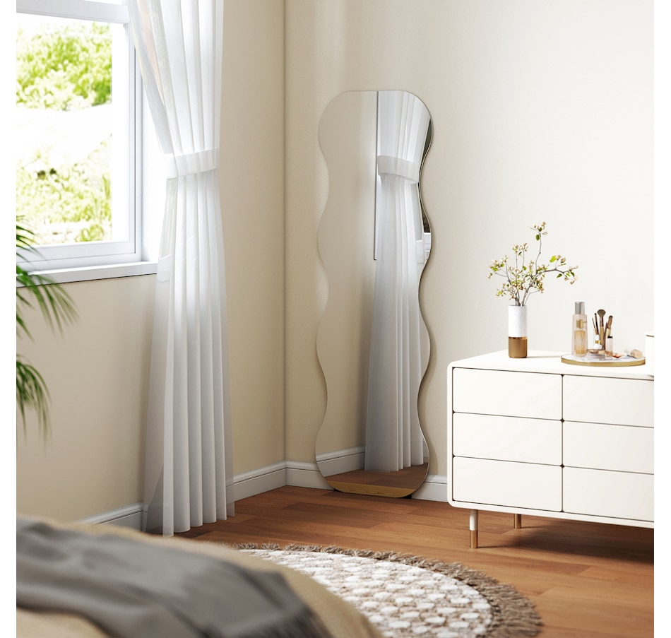 64" x 21" Full Length Mirror, Wavy Frameless Full Body Mirror, Black