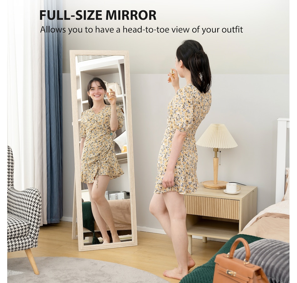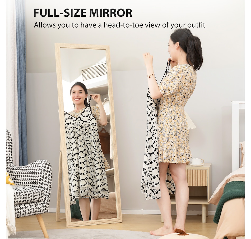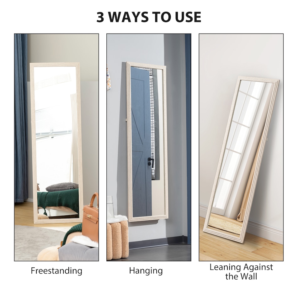 Struggling to see your complete outfit in a small mirror? That morning rush becomes more stressful when you can't check your look with confidence. The HOMCOM full length mirror provides a head-to-toe view, eliminating guesswork. Use it as a standing mirror or mount it to the wall to suit your space. Ensures a comfortable, full-body reflection for everyone, helping you start your day with grace.