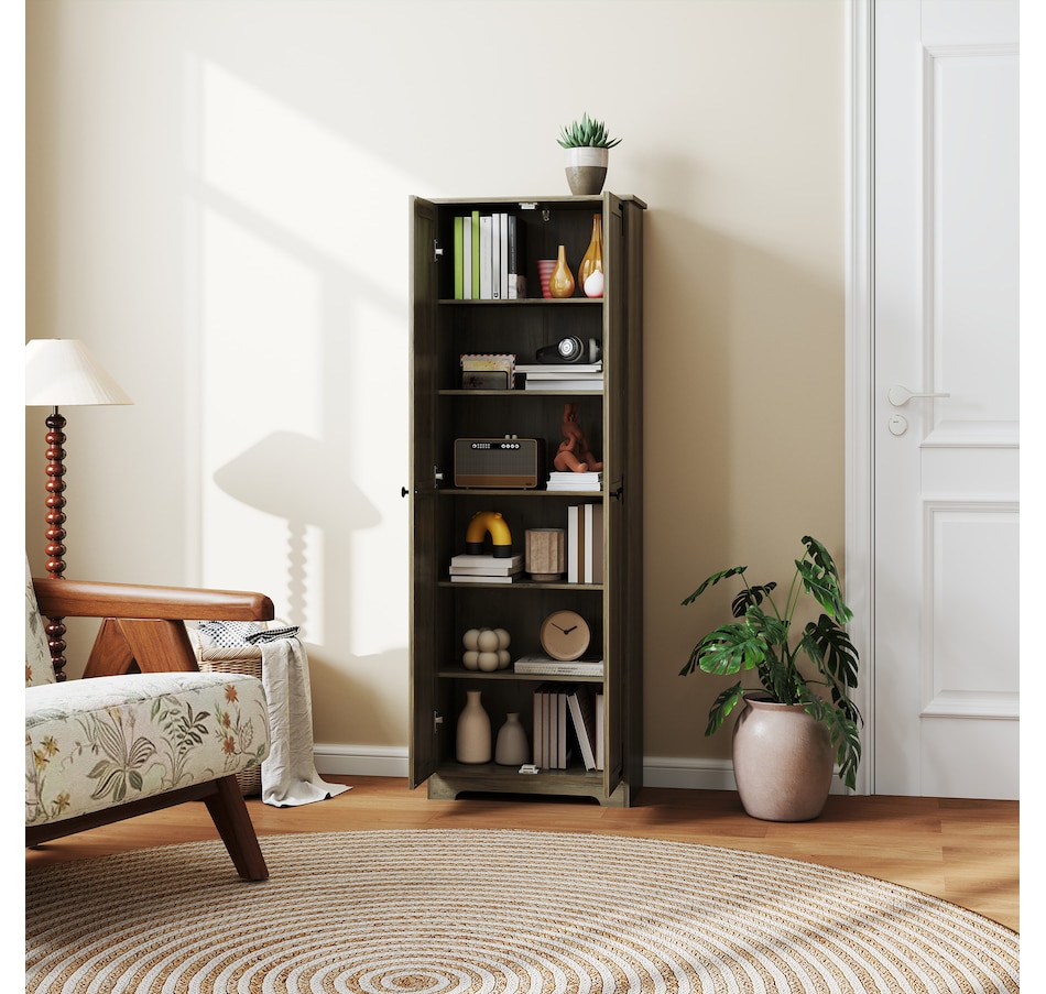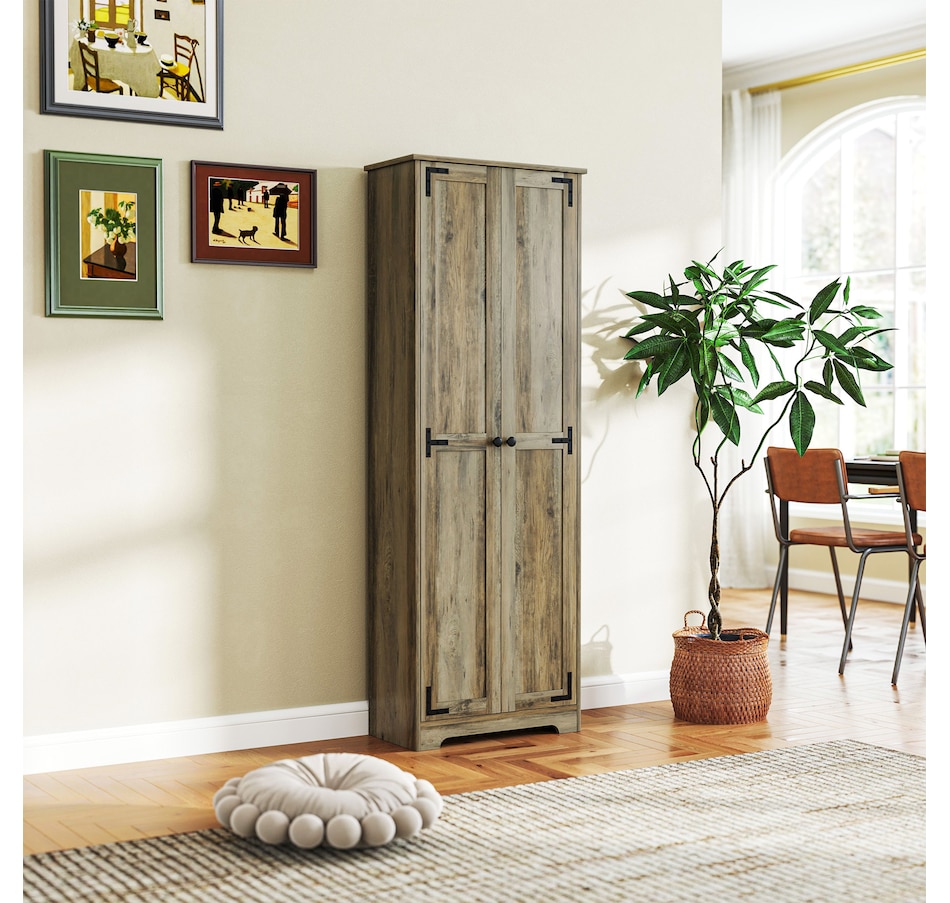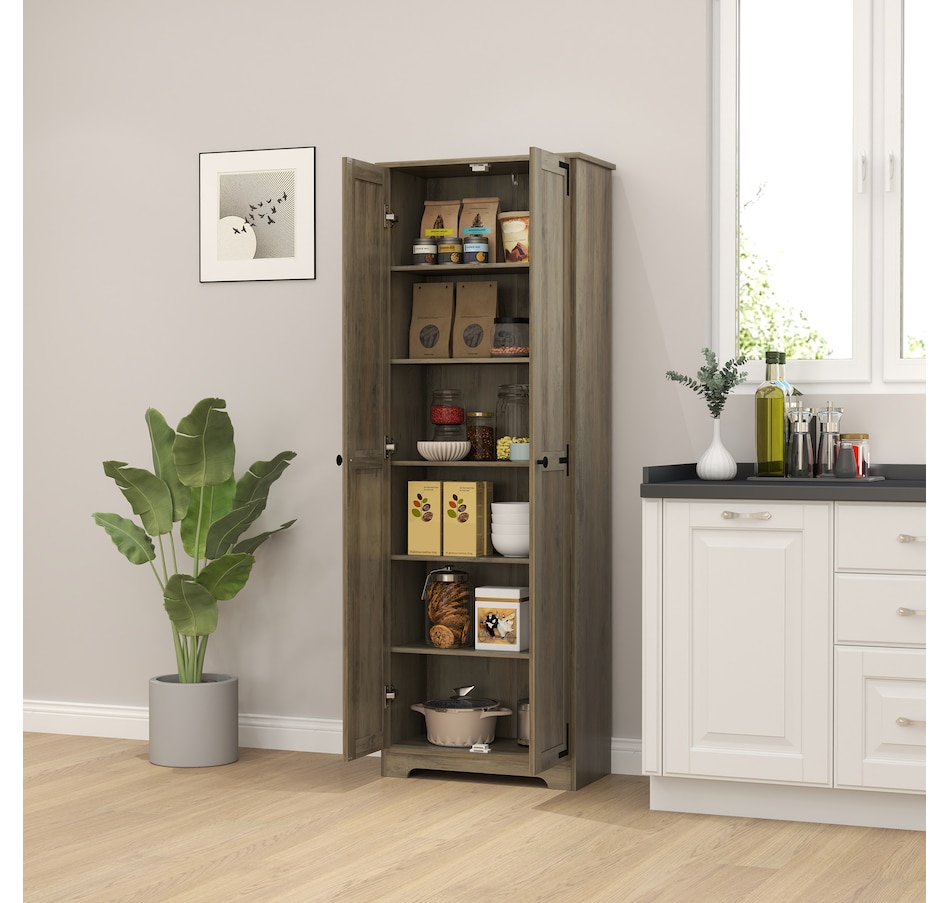 67" Farmhouse Pantry Cabinet, Tall Storage Cabinet, Distressed Grey