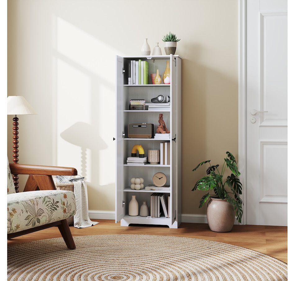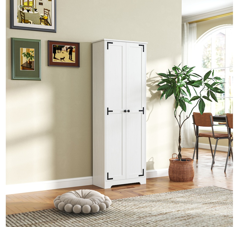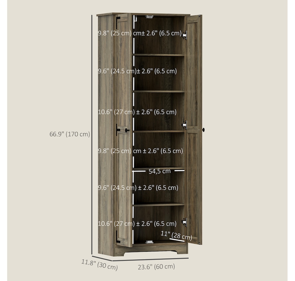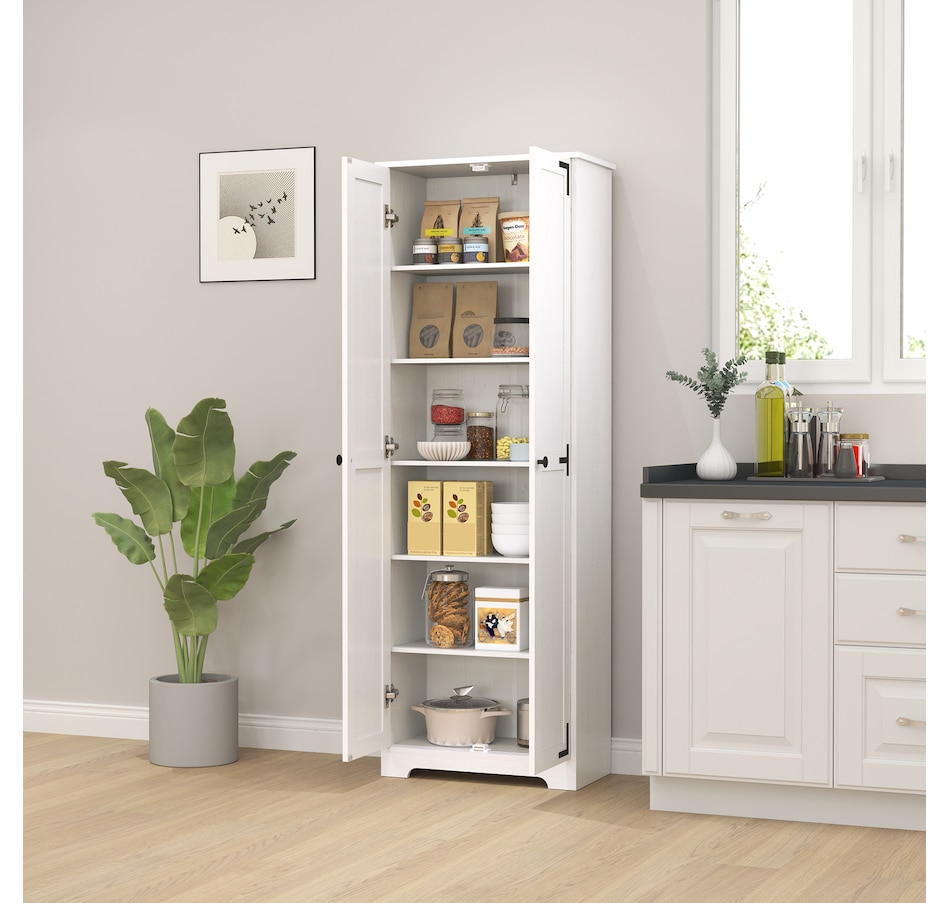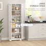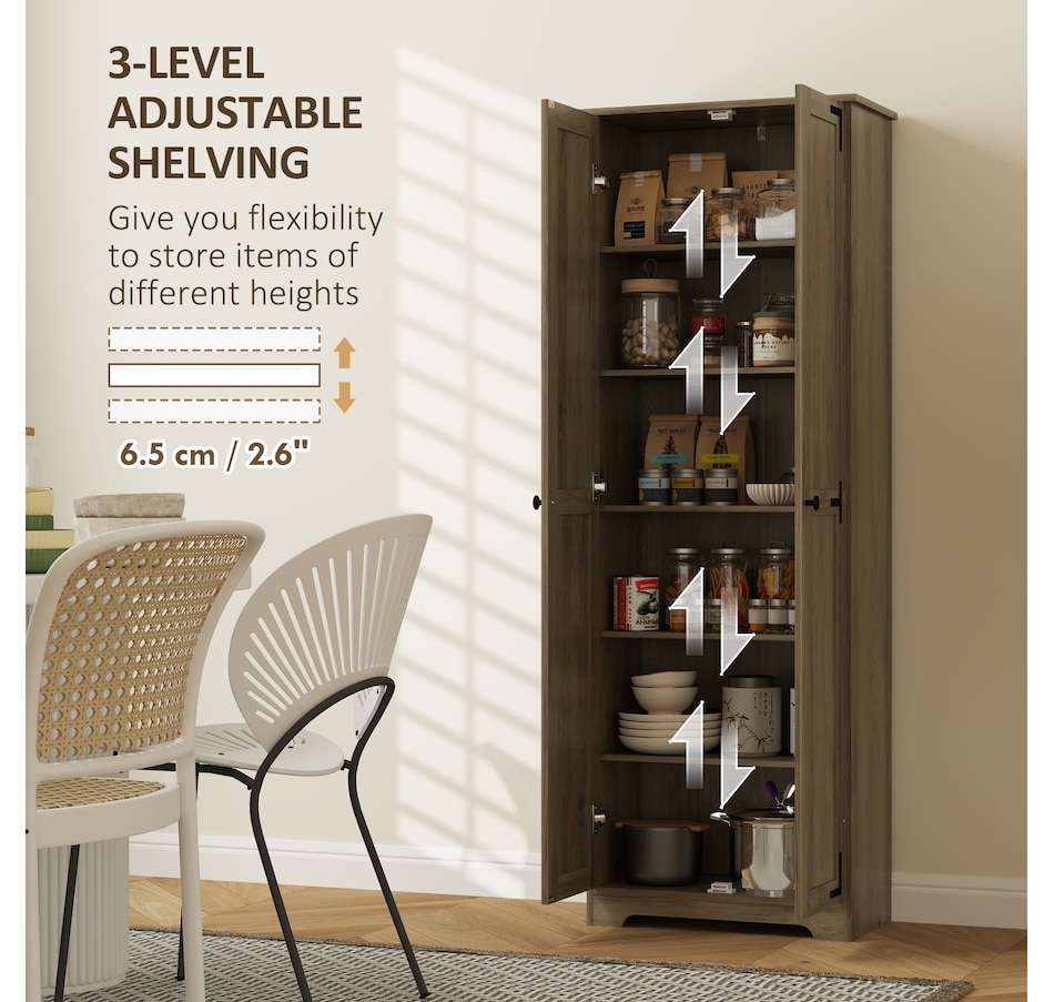 Discover the charm of the HOMCOM Kitchen Storage Cabinet, blending vintage elegance with functional design. This kitchen cabinet features a six-tier, two-door layout and four adjustable shelves, suitable for organizing your kitchen. Black accents add a modern touch to this farmhouse tall cabinet, ensuring style meets practicality in your home.Features: