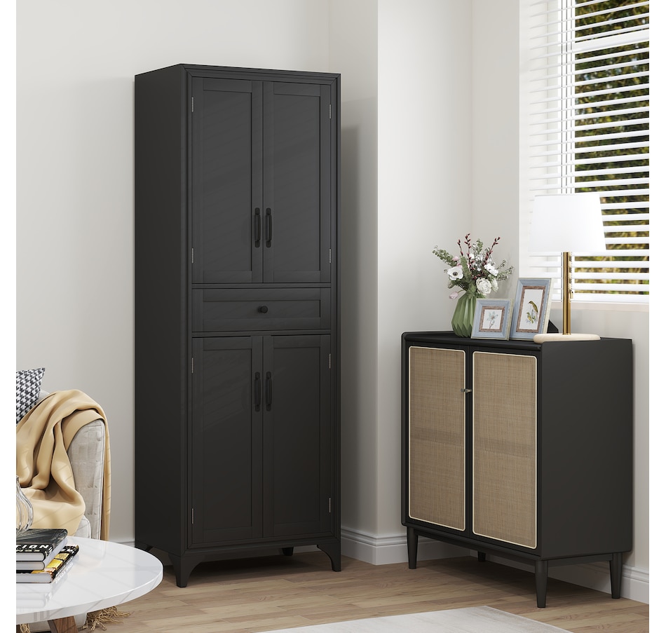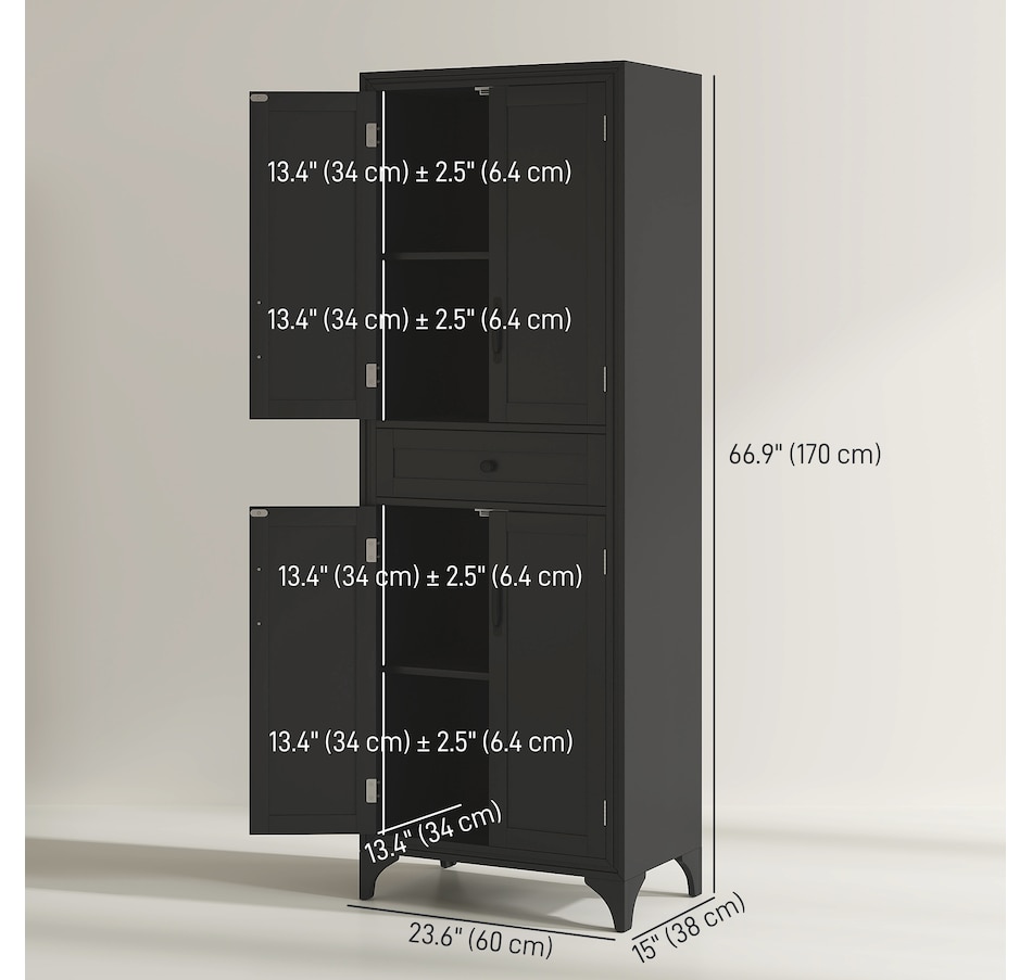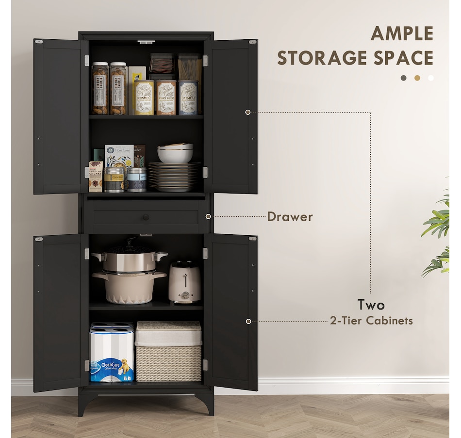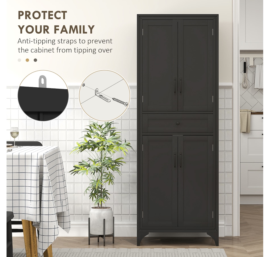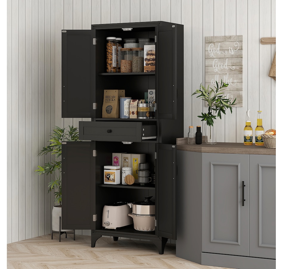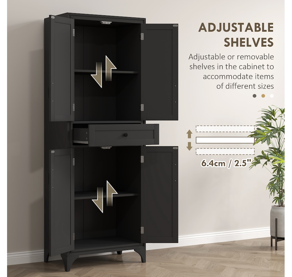 67" Kitchen Pantry Storage Cabinet with Doors and Shelves, Black