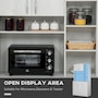 - Open countertop for storing your microwave oven, toaster, coffee maker