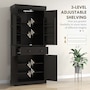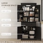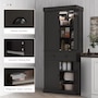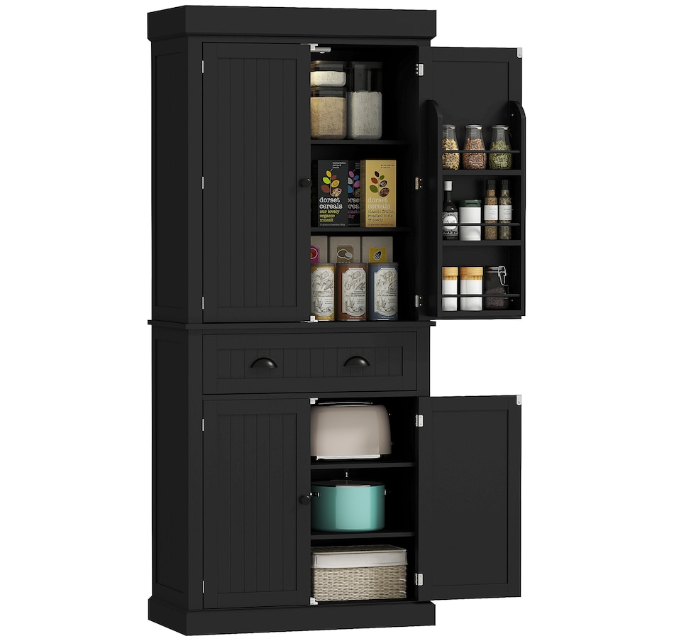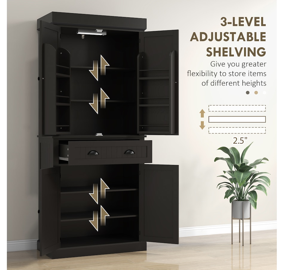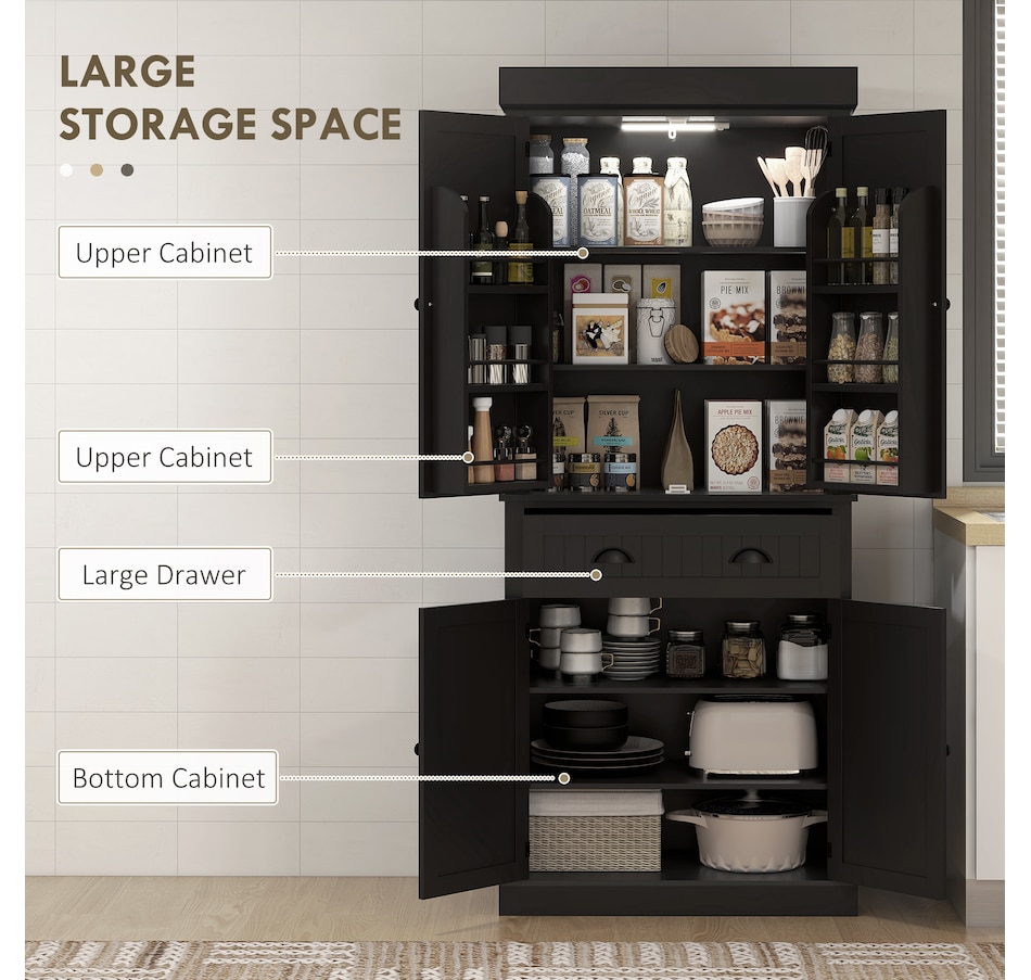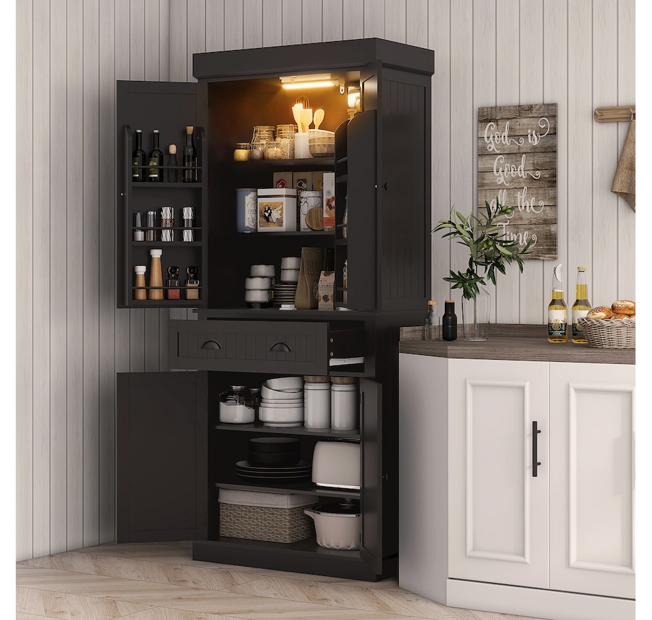 71" Kitchen Pantry Cabinet with Spice Racks and LED Lights, Black