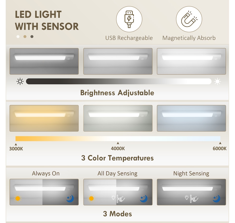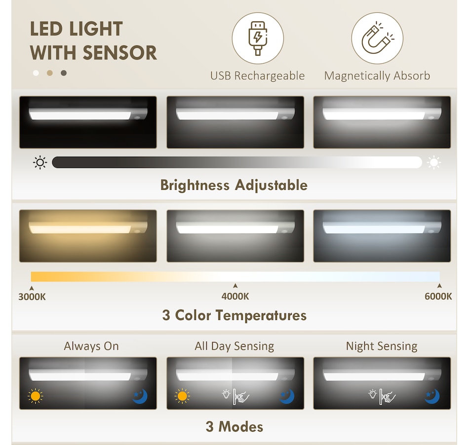 ● Adjustable LED light with sensor to enhance visibility and energy efficiency;