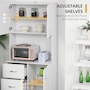 Want to add more brilliance to your house as well as keep the stuff organized for space-saving? This pantry cabinets with shelves and doors from HOMCOM is a perfect addition. Simple design and elegant appearance, make it look beautiful in any kind of style. Made of particle board, the hutch cabinet is built for long-lasting performance. This kitchen pantry storage cabinet has a large space which can greatly solve your storage problem. Perfect for home decoration and everyday use!Features: