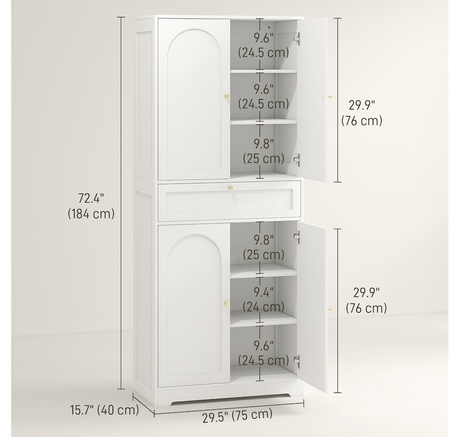 72.4" Tall Kitchen Pantry Cabinet, Storage Cabinet with Doors, White