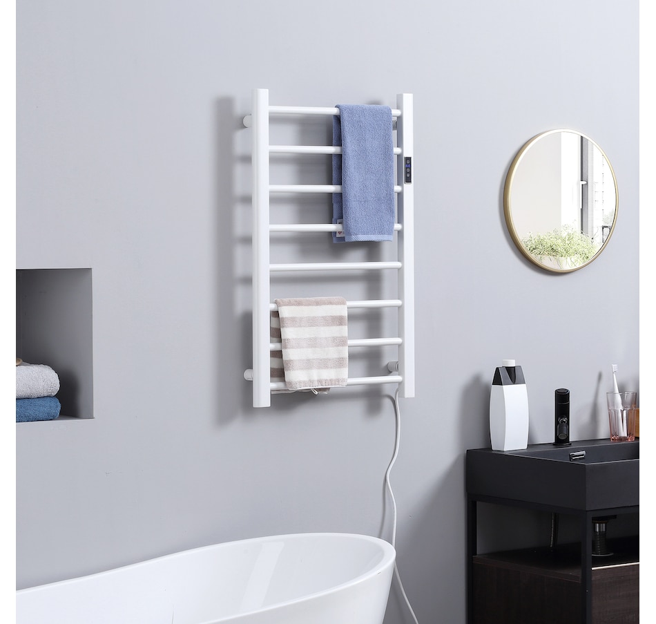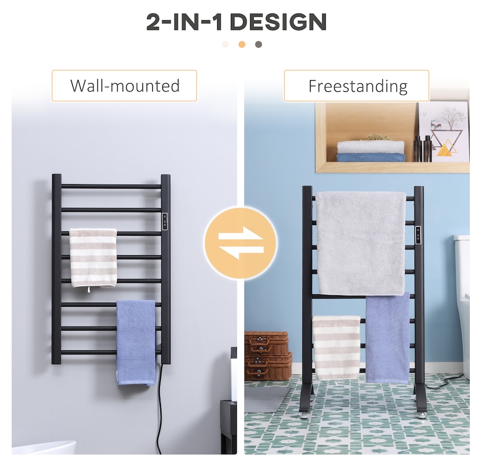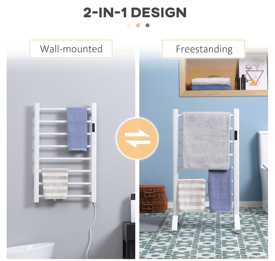 Life is stressful. After a hot shower, what could be better than preparing for the day ahead with a warm, soft towel? HOMCOM's generous 8-bar towel warmer distributes heat evenly and warms your towels quickly. It can be wall mounted or used as a freestanding towel rack for more flexibility. Warming up clothes before changing in the bedroom or drying washed clothes in the laundry? It's up to you. The built-in timer ensures that you never forget to turn it off. Get one and treat yourself now.