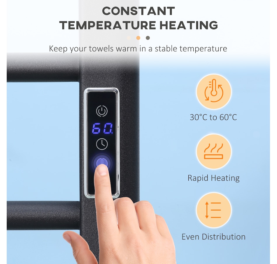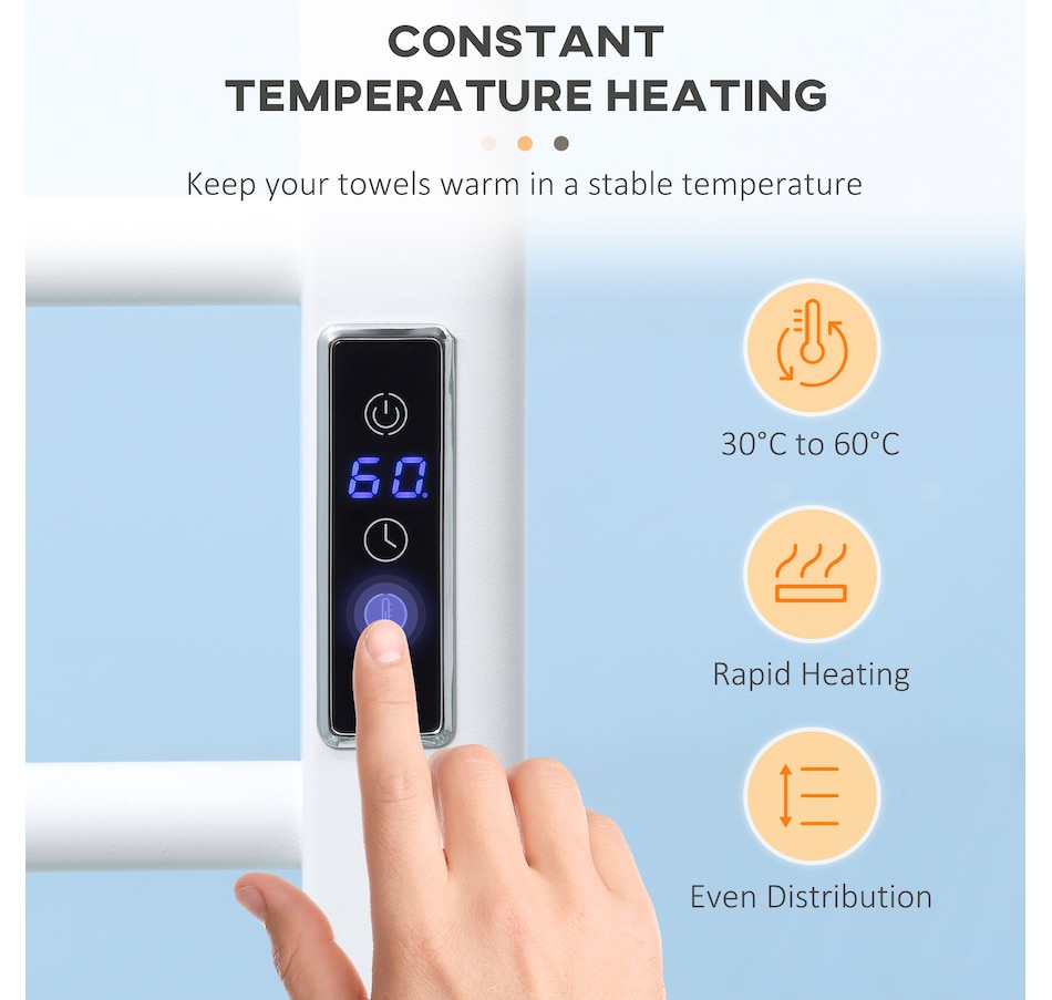 ● You can adjust the temperature from 30°C to 60°C quickly to keep your clothes and towels warm;
