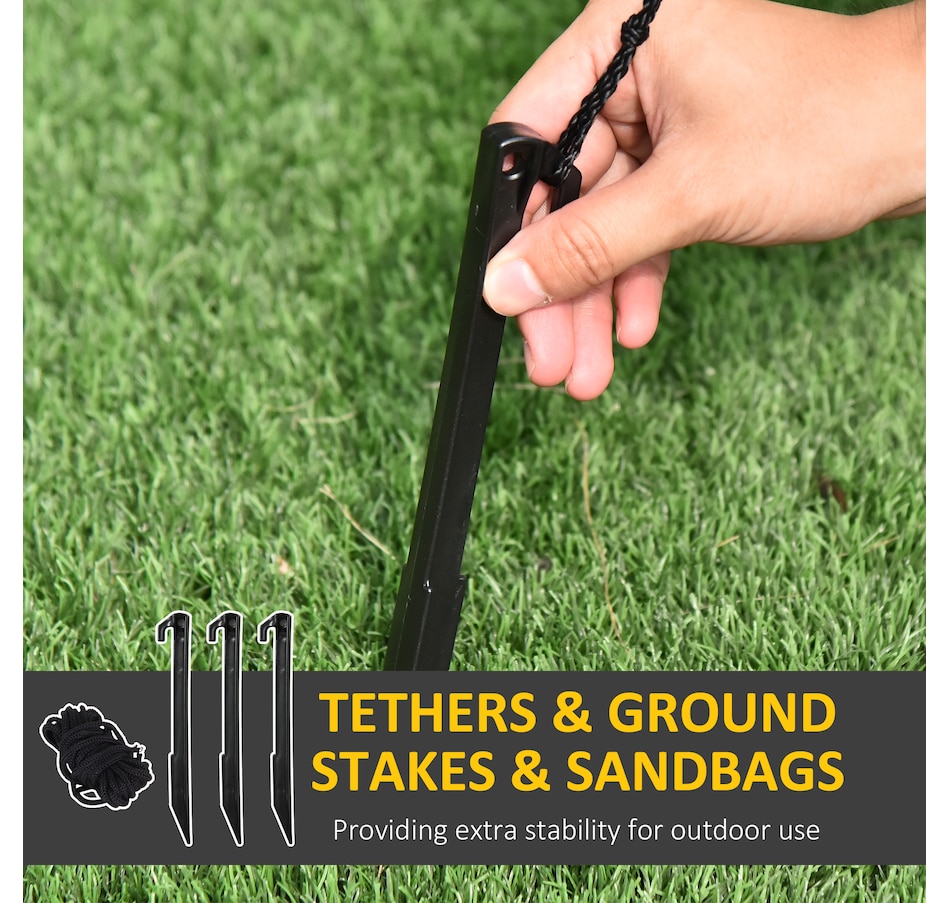 ● Includes 5 stakes, 3 drawstrings and 2 sandbags to keep it anchored on windy nights;