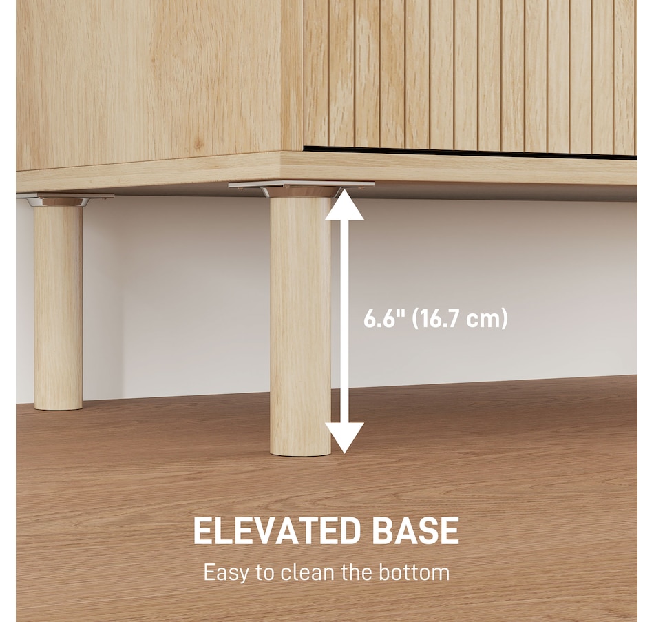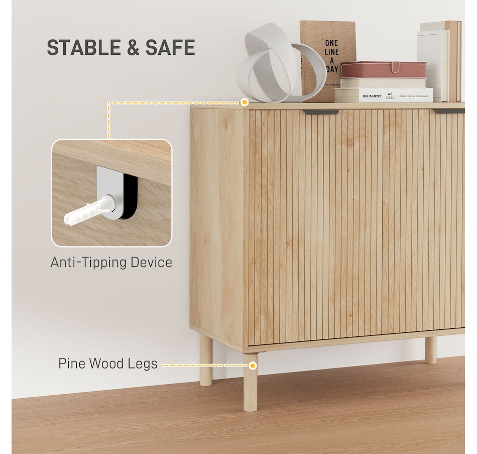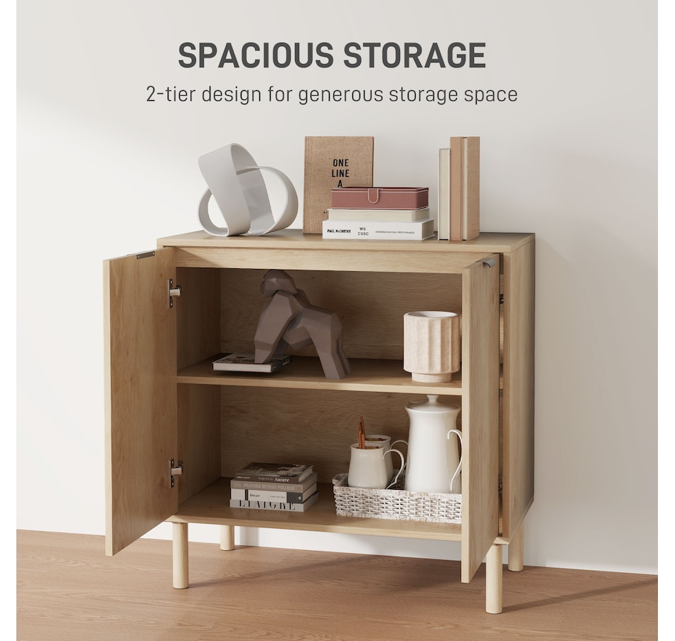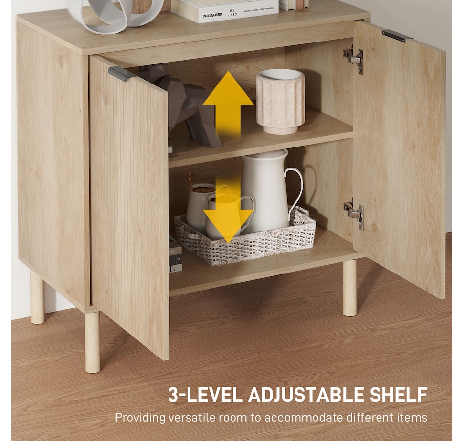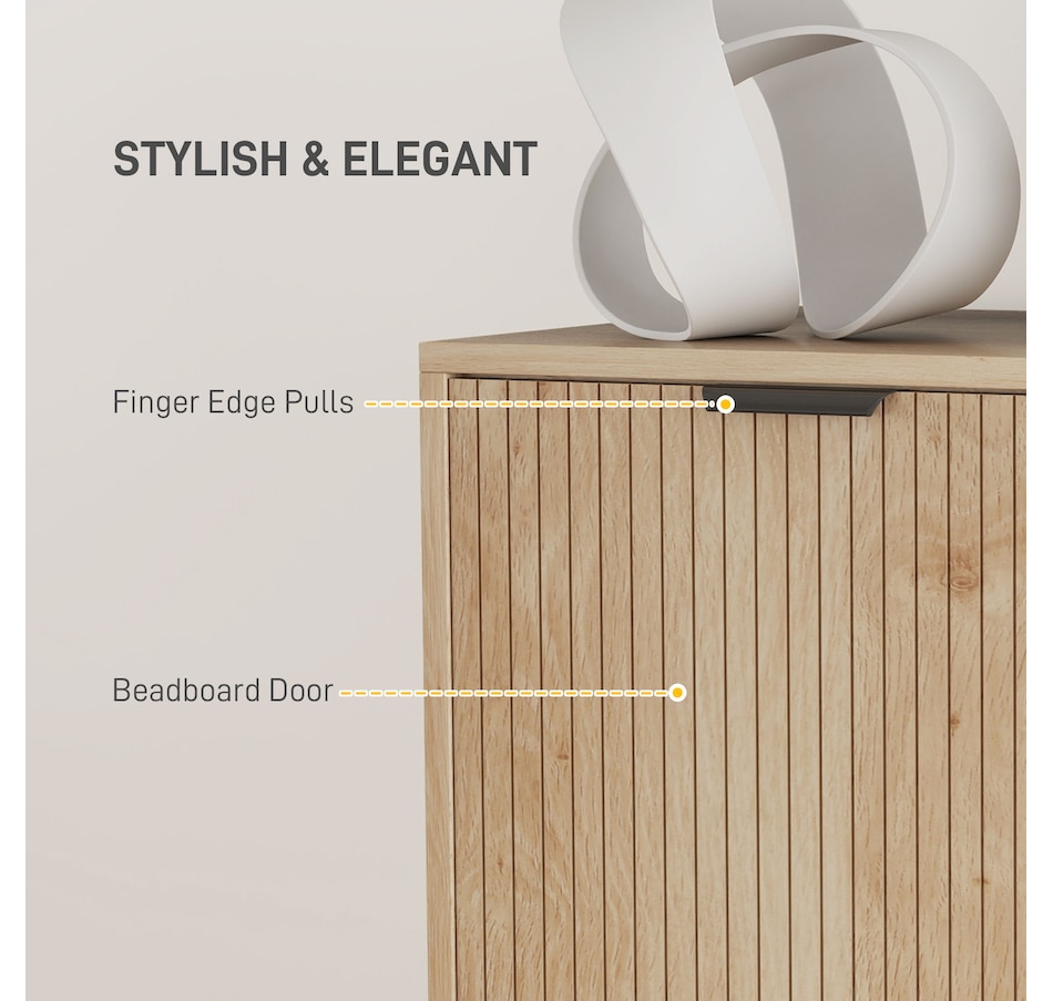 Discover the charm of the HOMCOM small storage cabinet, a stylish blend of functionality and aesthetics. Its three-level adjustable shelf and dual-layer design maximize your organizing potential, great as a kitchen cabinet or entryway cabinet. The wood effect and chic beadboard doors with sleek black finger edge pulls add a dash of elegance to any room, from the dining room to the living room. Elevate your space effortlessly!Features: