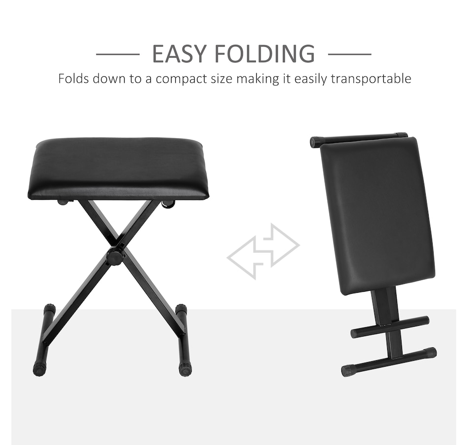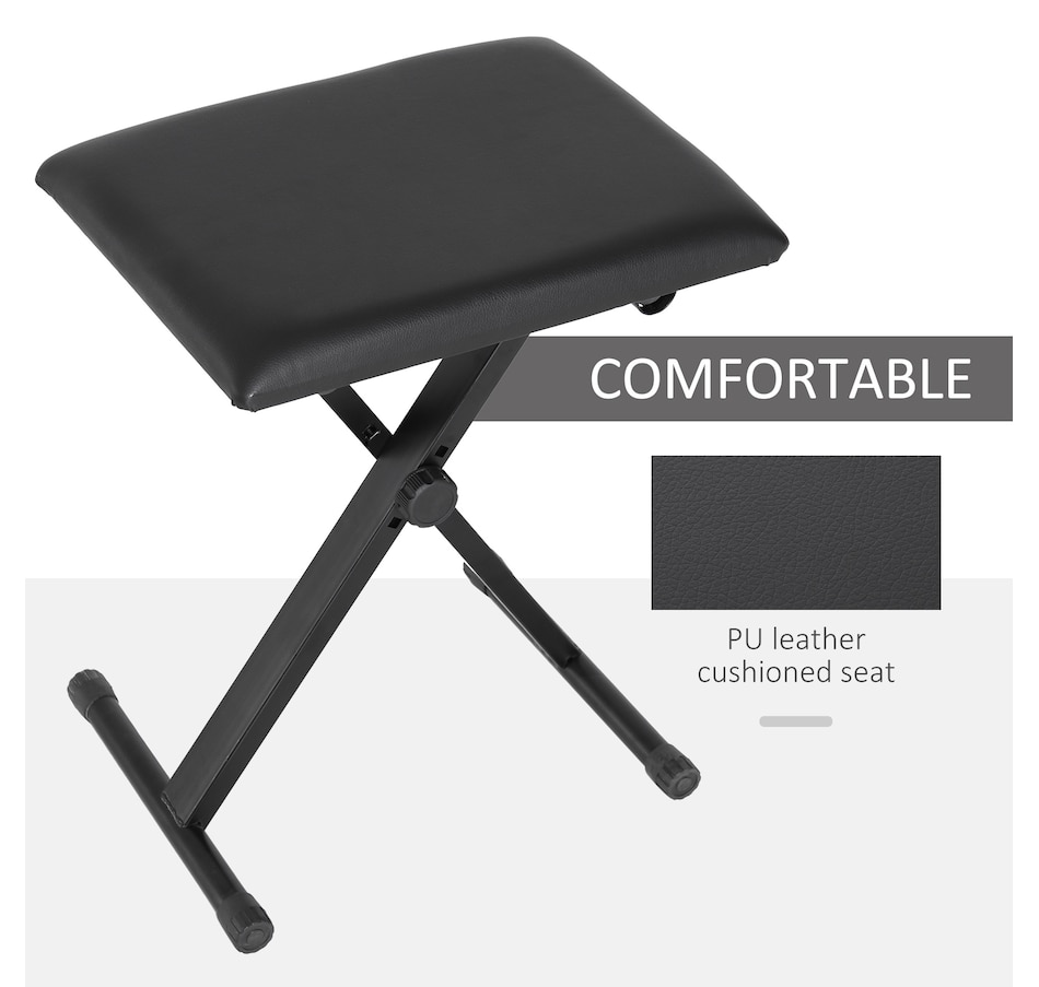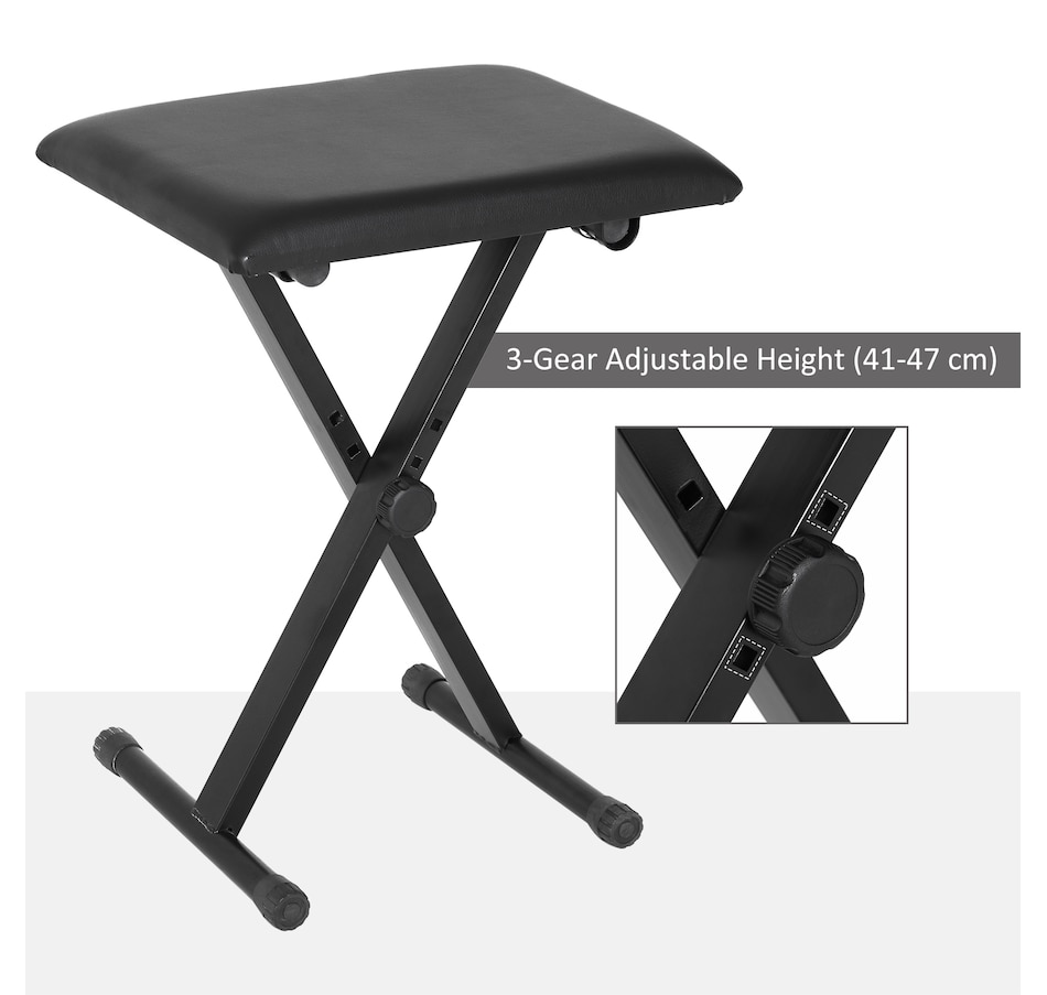 Play in comfort, wherever you are. This HOMCOM adjustable piano stool is designed to make every practice session and performance more enjoyable. Its 3-level height adjustment (14.6"-18.5") means it's great for both adults and teens, ensuring proper posture for better play. Thick padding with faux leather keeps you comfortable even during long practice hours. When space matters, simply fold it flat in seconds for easy storage or take it with you to the studio, stage, or lessons.
