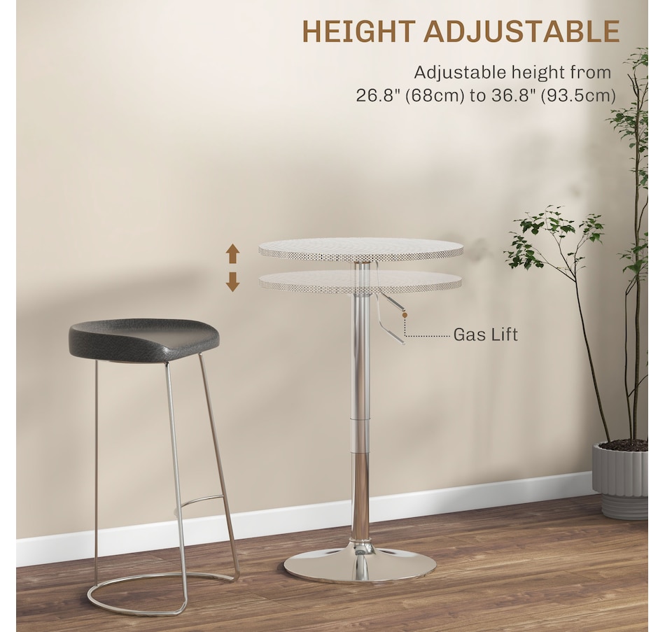 Are you searching for a versatile table that seamlessly transitions from a round dining table to a counter-height table? Consider this height-adjustable pedestal table designed to meet your needs. Our tall table is excellent for creating drinks for guests or enjoying morning coffee or supper with your partner. It features a PE rattan tabletop and an electroplated steel base for functionality and stability.Features: