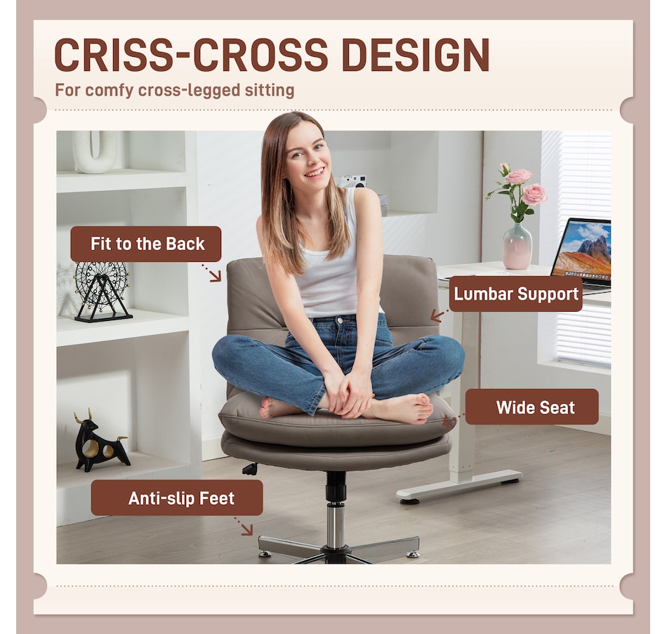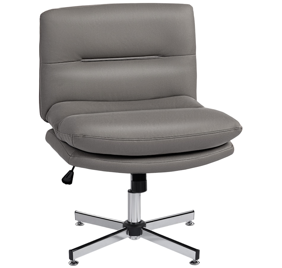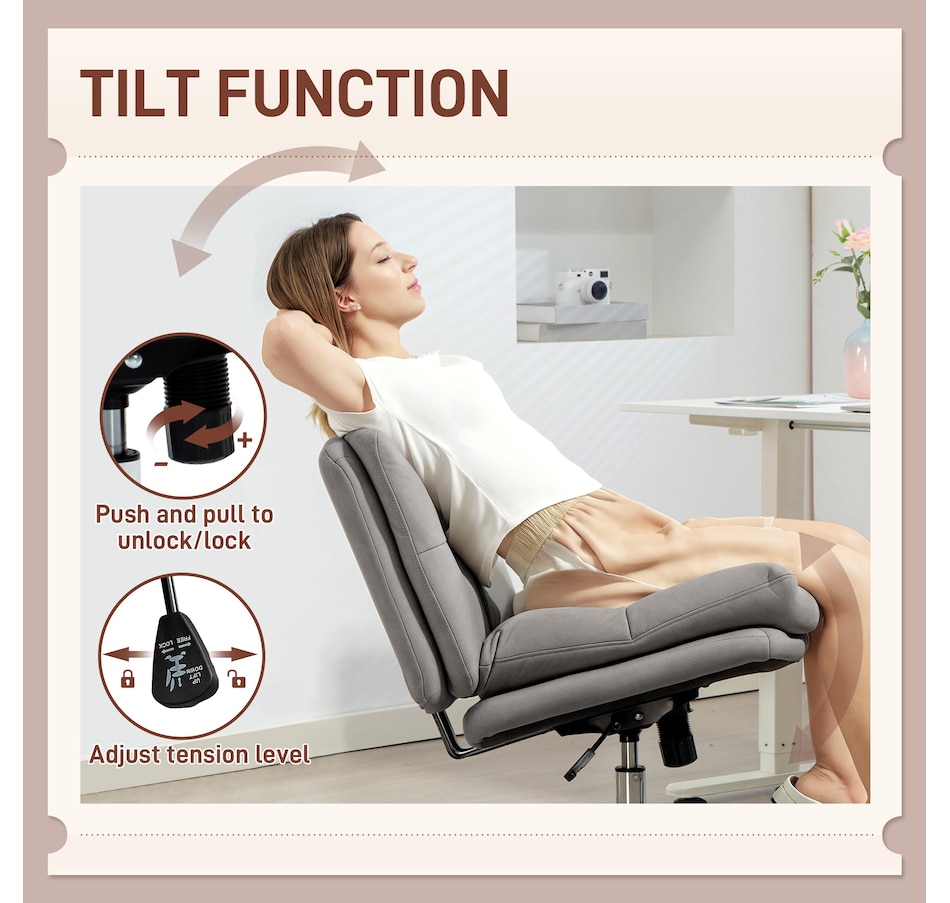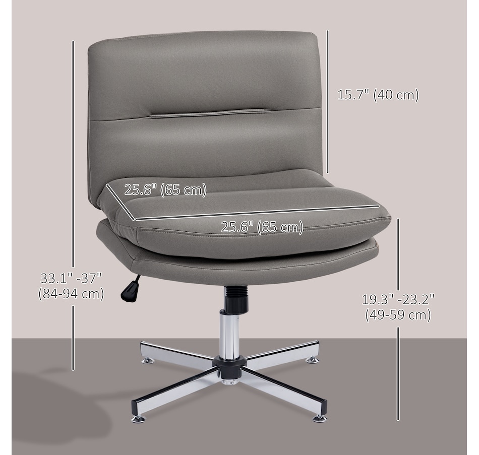Discover the comfort of the HOMCOM armless chair, where style meets functionality. Its criss-cross design and wide seat, upholstered in breathable microfiber cloth with high-density foam padding, ensure a cozy sitting experience. Rock or tilt effortlessly for a personalized comfort zone, great for any task at your computer desk. Suitable for any work setup!Features: