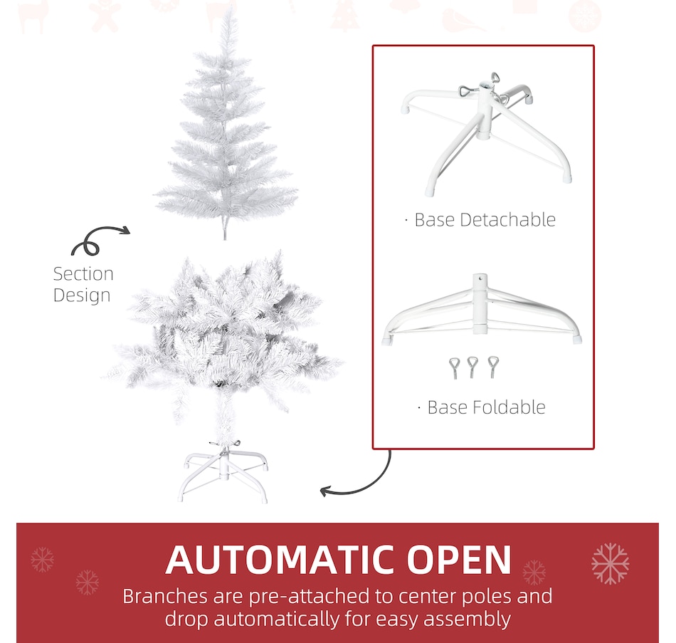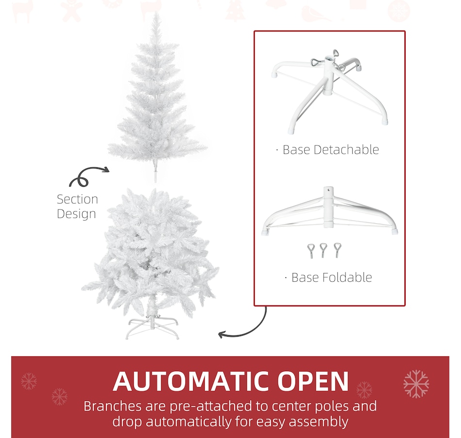 HOMCOM's realistic Christmas tree selection gets you all the ambience the holiday brings without any of the mess the holiday brings. Spending time together with friends and family is really what Christmas is all about, and your tree is something you shouldn't have to mess with (ugh). Our HOMCOM Christmas tree decor will help take some of the hassle out of the holiday. Little mess, simple assembly, and impeccable ambience help make your season just a little brighter.Features: