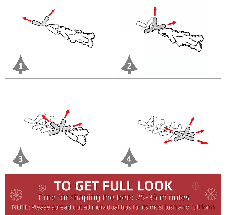 ● Material: PVC, Steel;Note: ;Only for indoor use, not for outdoor;In order to get a full appearance, please spread out all individual tips to get the best possible look from the tree, suggest you to take some time to shape the tree.;Only the tree with the stand is included. Ornaments are NOT INCLUDED and are used just for effect;Package Includes: