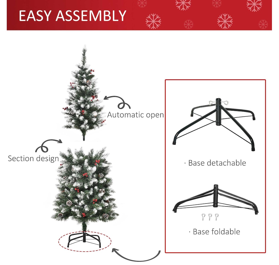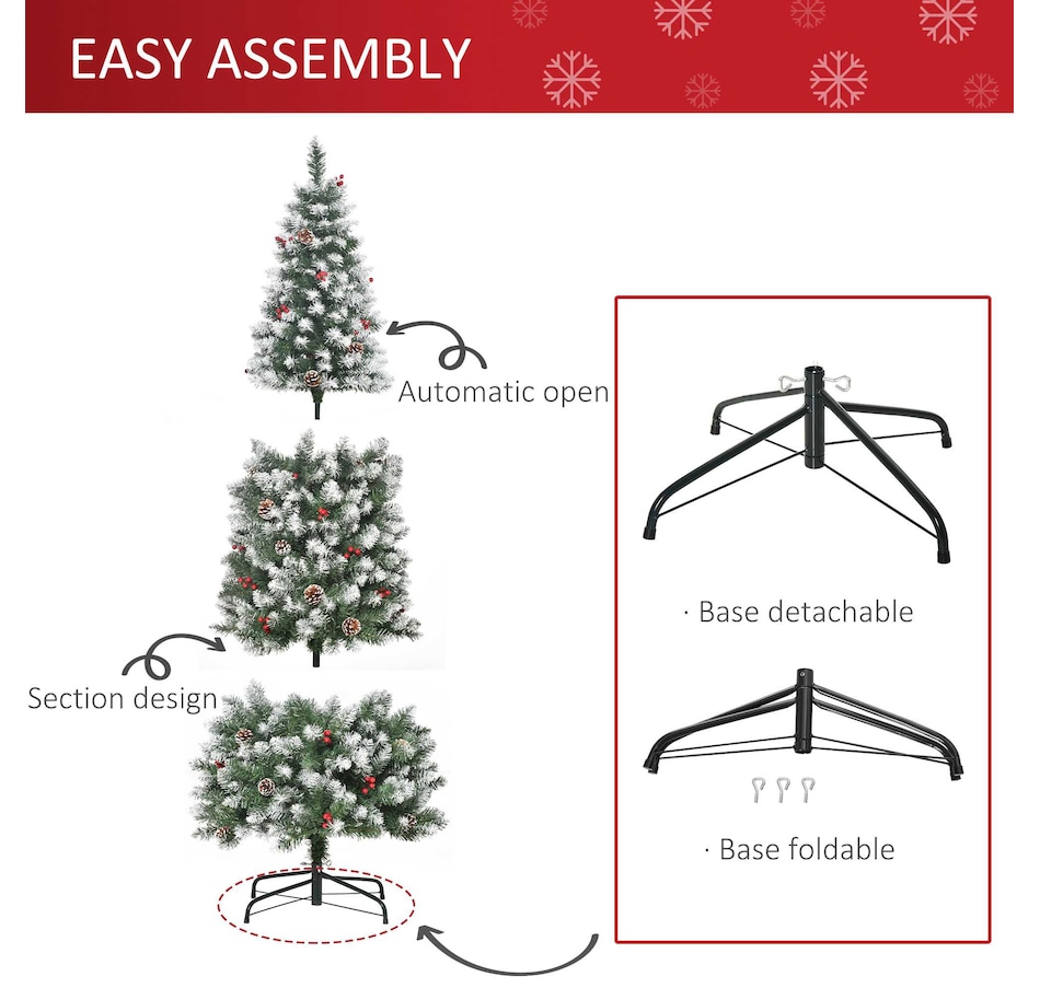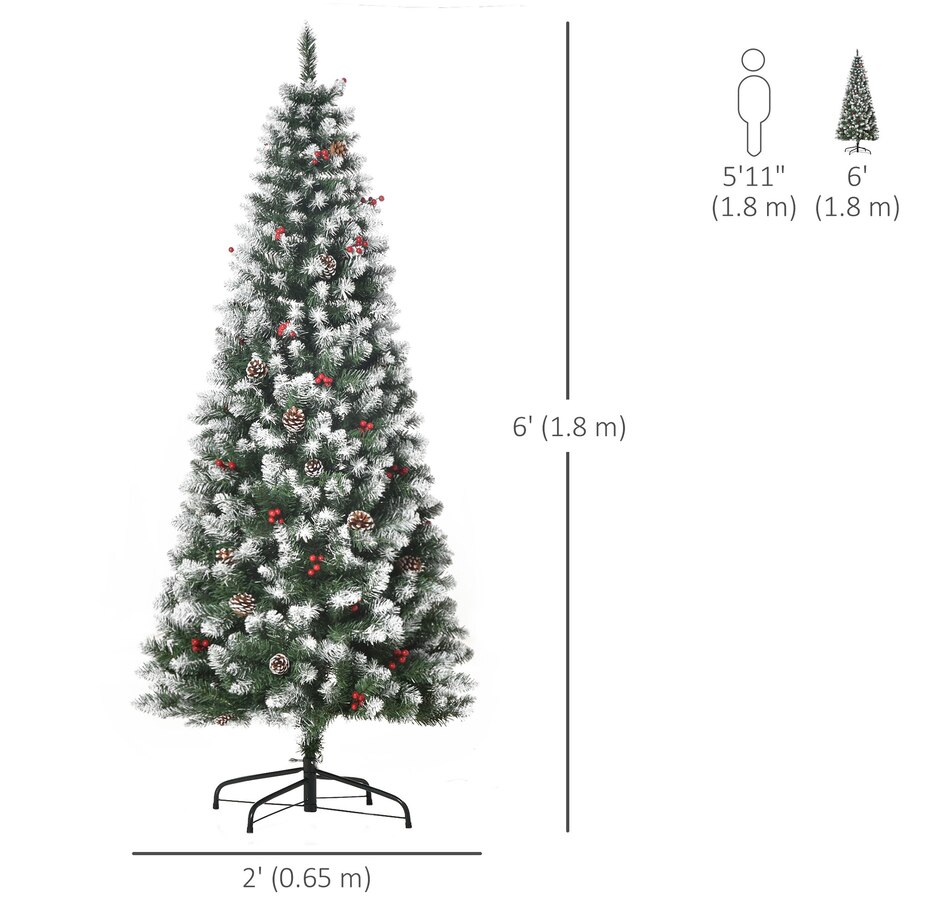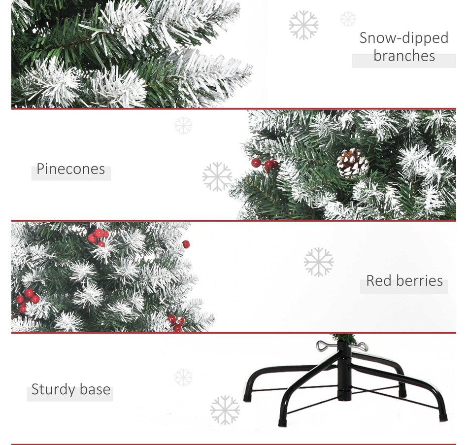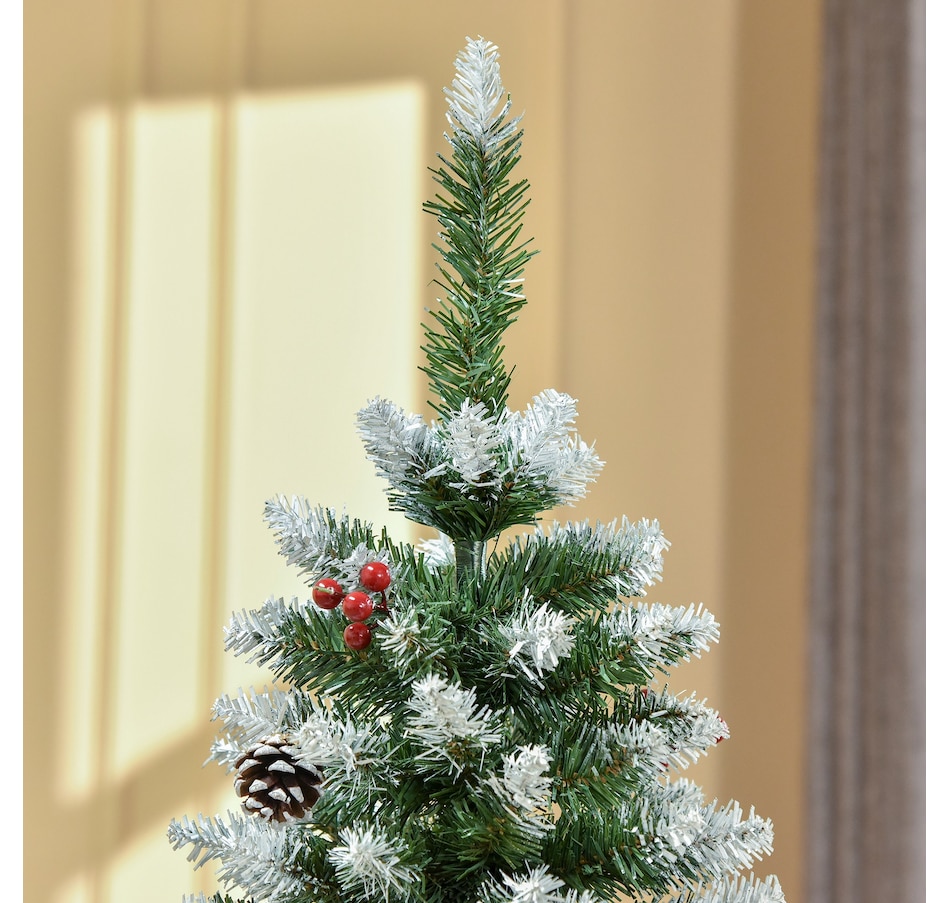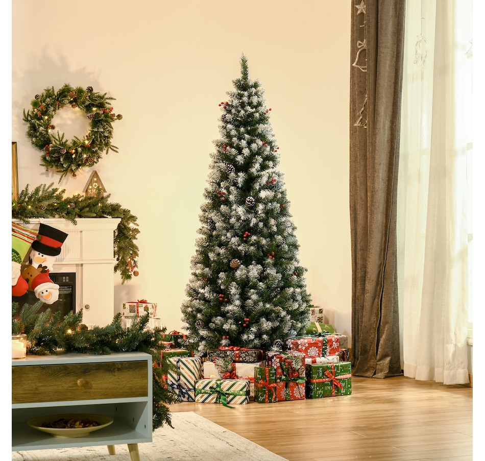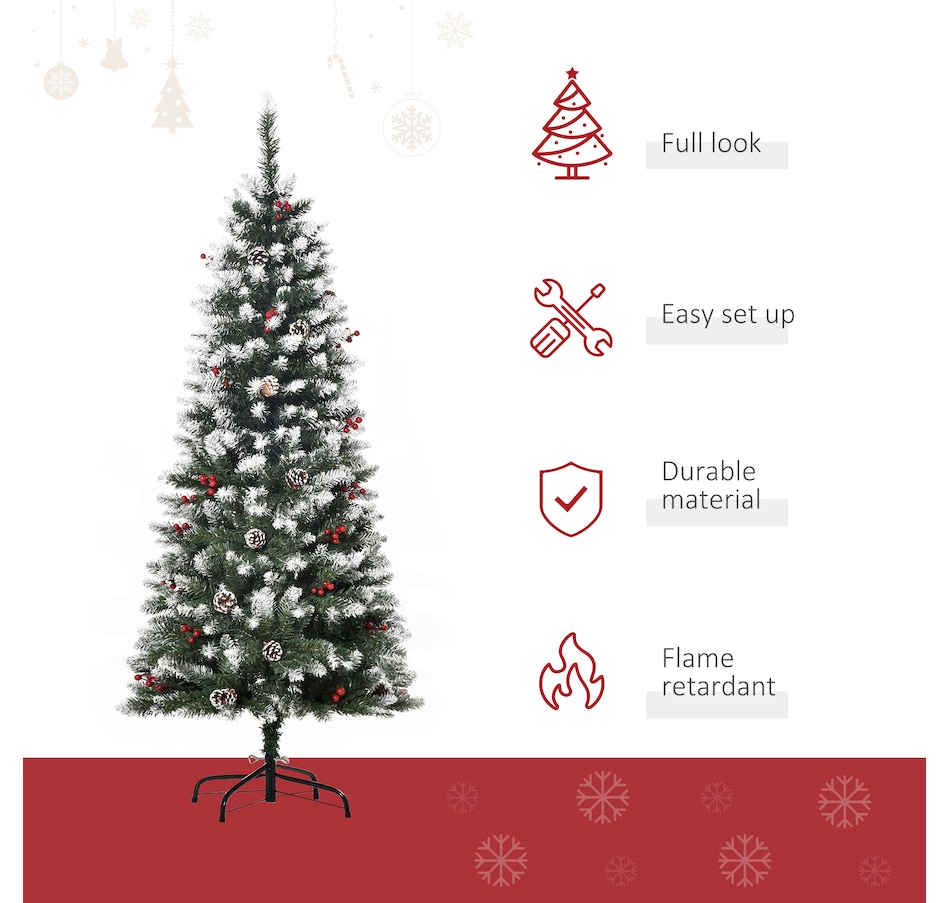 This holiday season, indulge in a stress-free and delightful atmosphere with HOMCOM's convenient and refreshing Christmas tree line. With an easy setup process and no cleaning required, our slim Christmas tree radiates pure holiday allure. Revel in the genuine essence of Christmas, relishing moments with those you cherish, while our frosted Christmas tree effortlessly illuminates your season.Features: