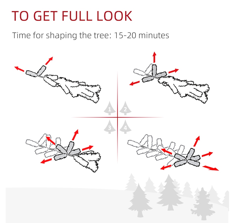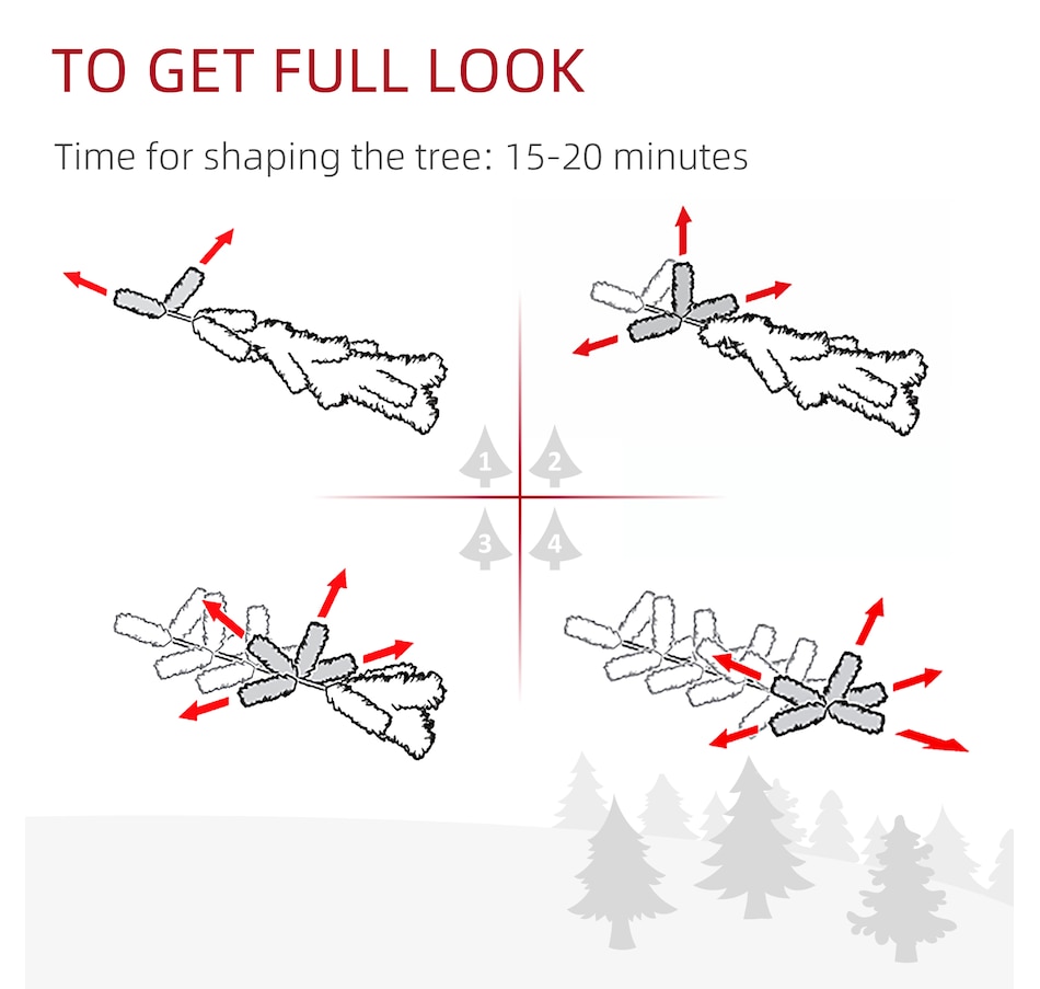 ● Note: 2. In order to get a full appearance, please spread out all individual tips to get the best possible look from the tree, suggest you to take some minutes to shape the tree;