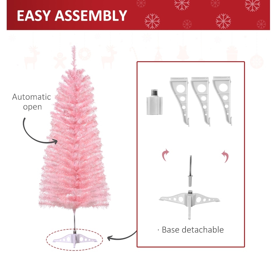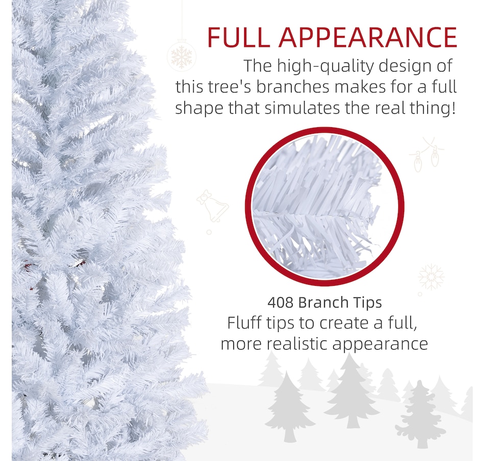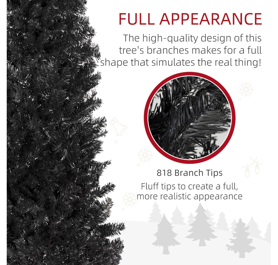 Bring nature home without the mess with this slim Christmas tree from HOMCOM! Our beautiful holiday tree provides a great alternative to conventional trees with easy set up and little maintenance required. Designed in perfect shape, this skinny Christmas tree consists of full-bodied and realistic plastic tips. It is designed to be a striking centerpiece for your family's holiday decor this year and in years to come.