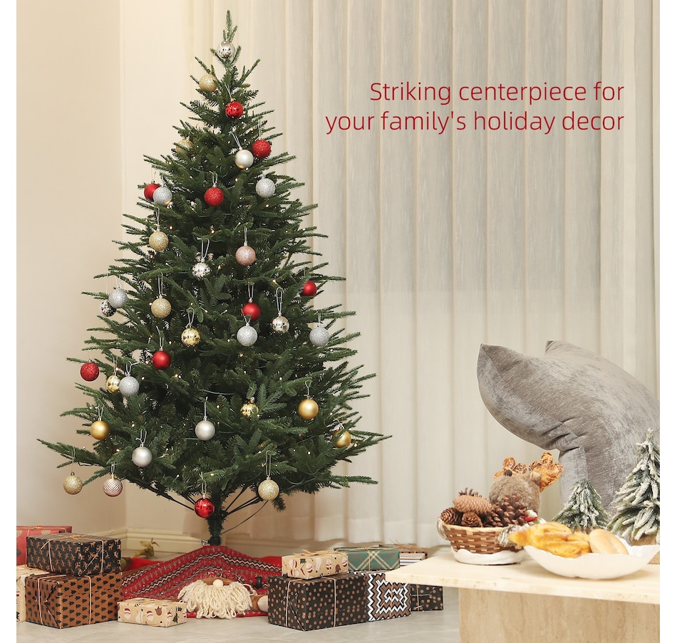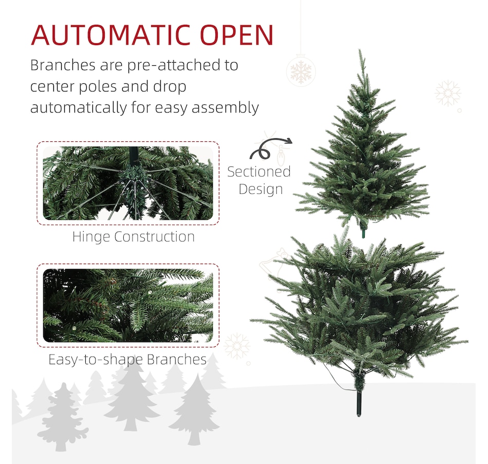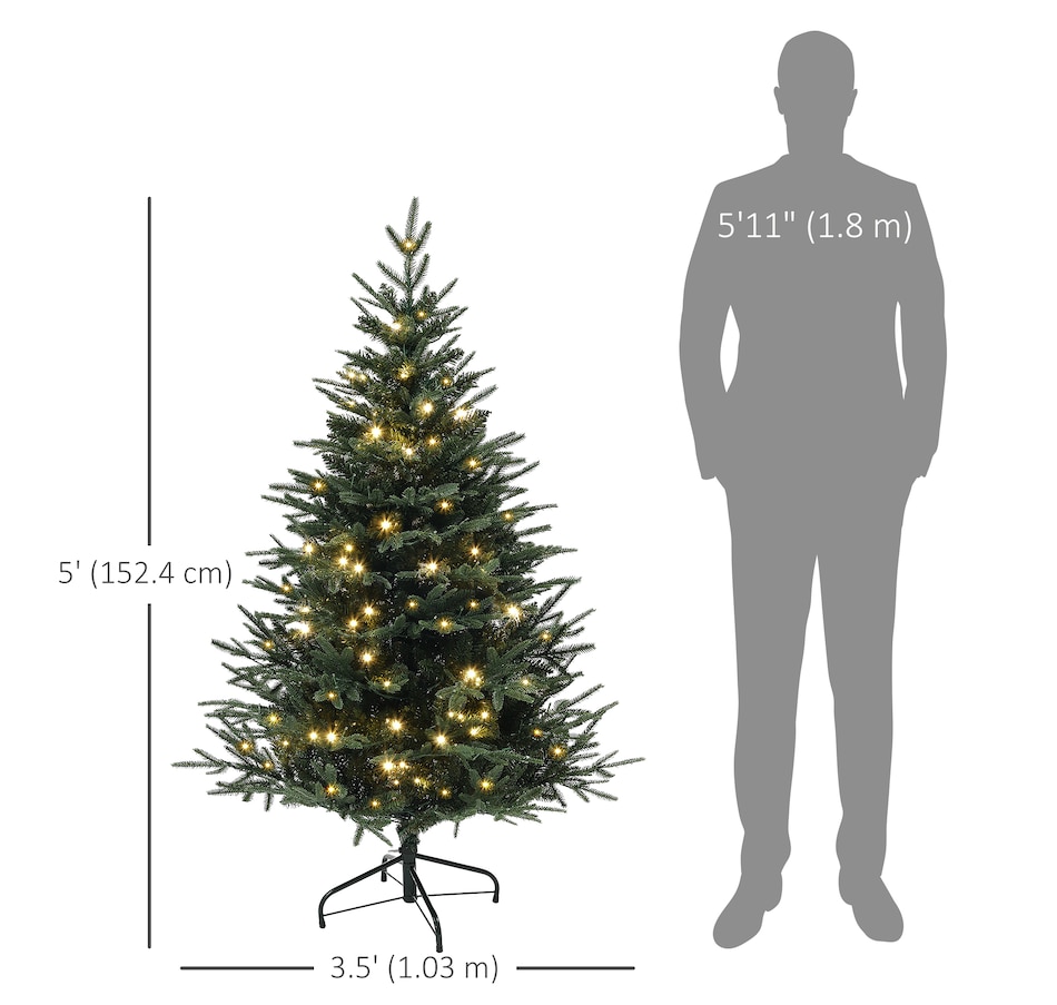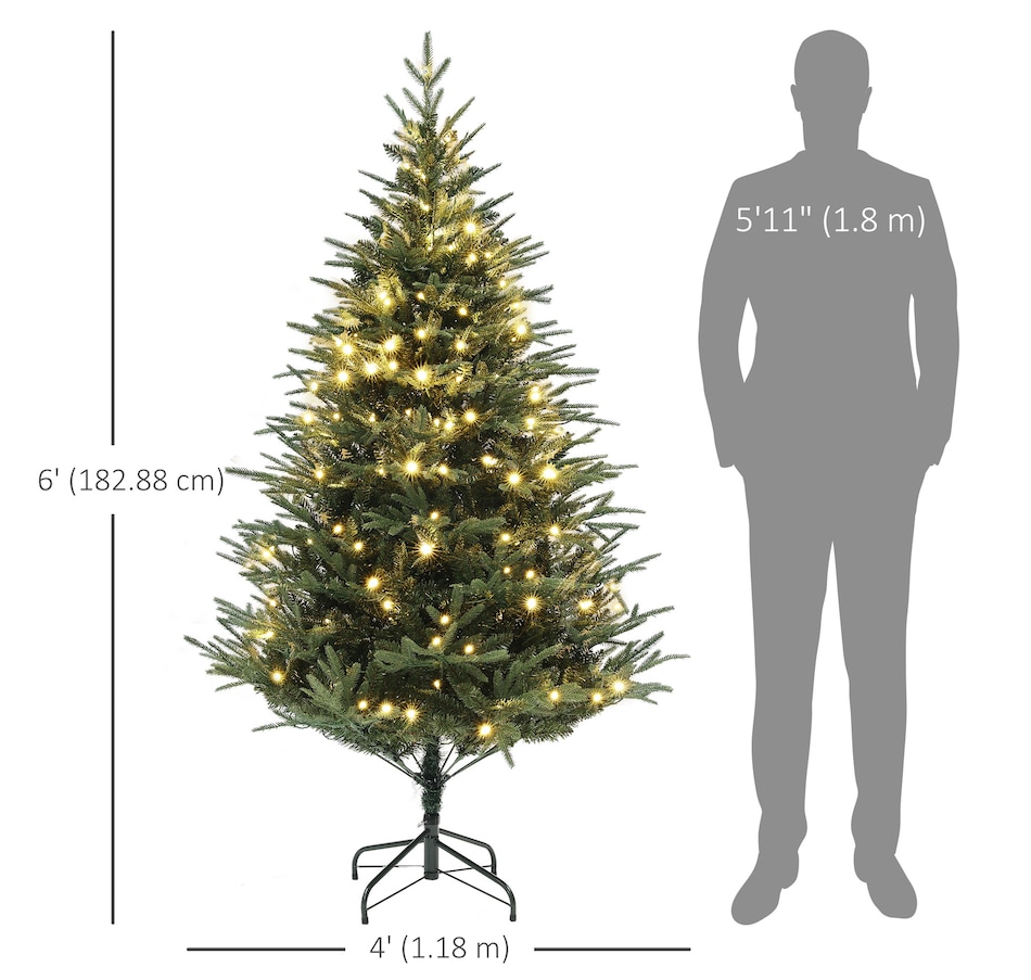 Light up your holiday season with the HOMCOM LED Christmas tree, featuring warm white LED lights for a cozy glow. With realistic, nature-inspired branches, this artificial tree adds a magical touch to any space. Its flame-retardant branches ensure your festivities stay safe, while the steel base provides stability. Set the scene for merry-making with this enchanting Christmas tree!Features: