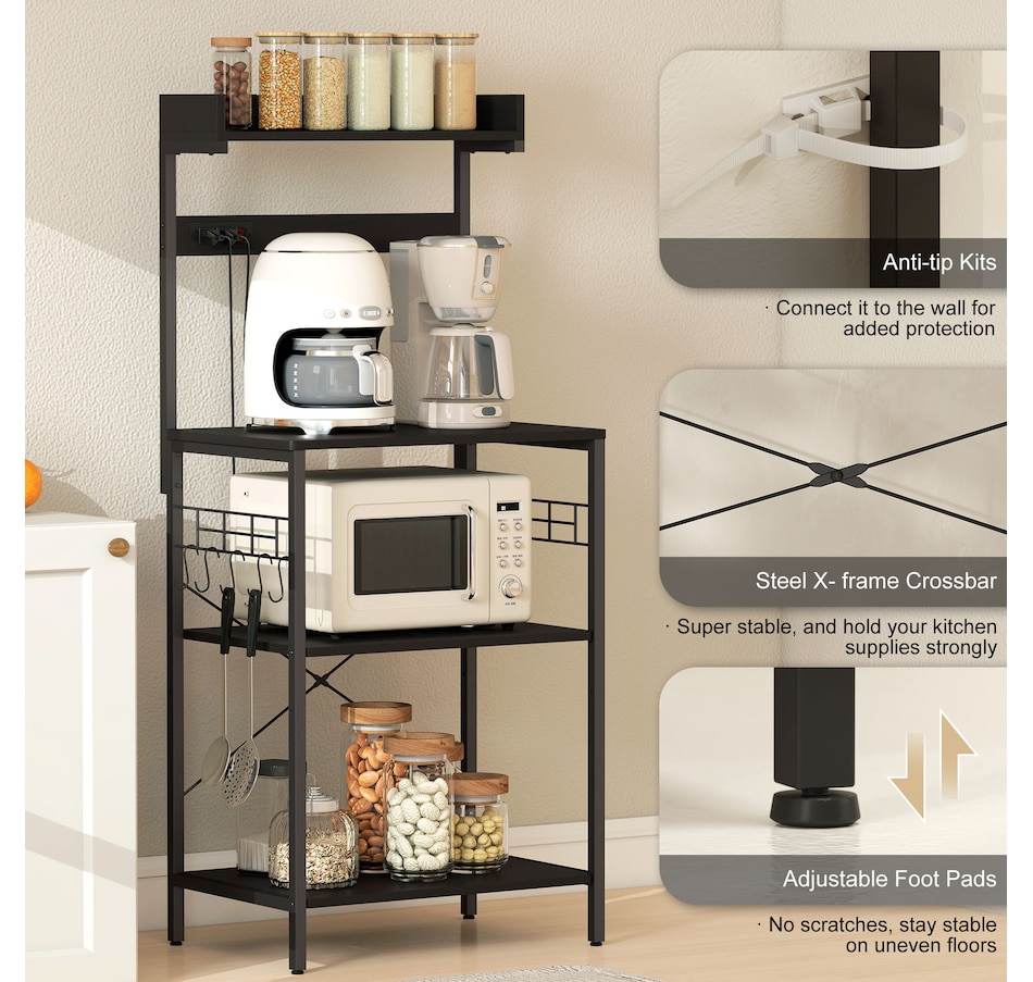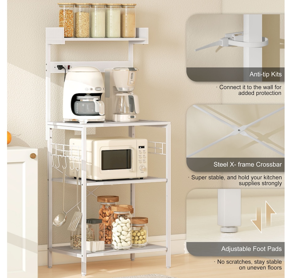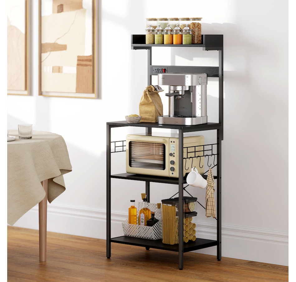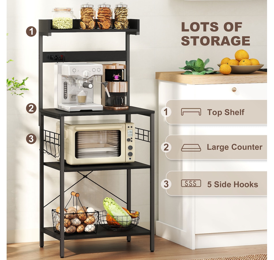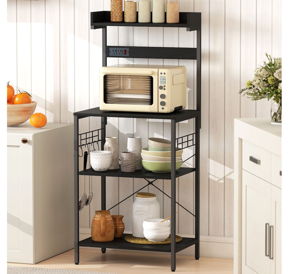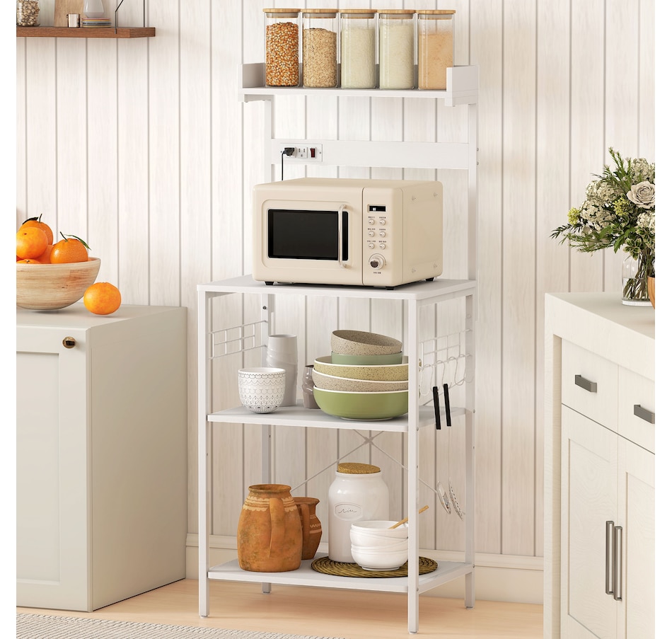 Bakers Rack with Power Outlet, Adjustable Shelves, Microwave Stand