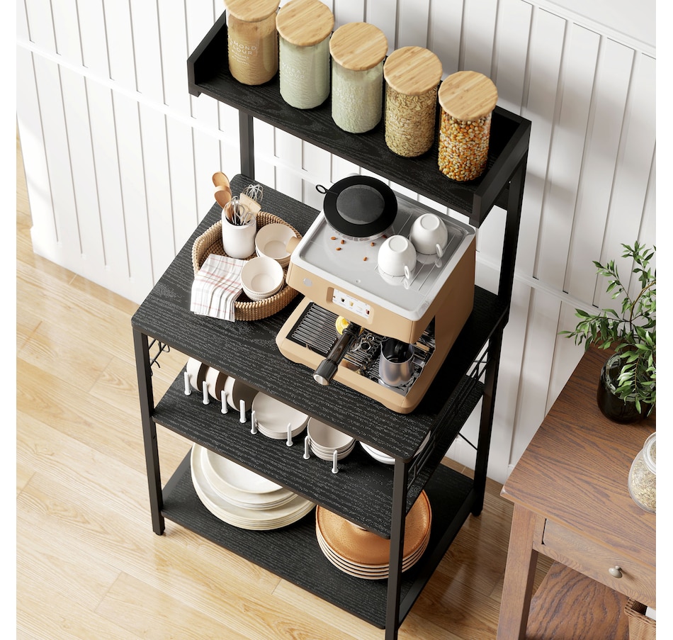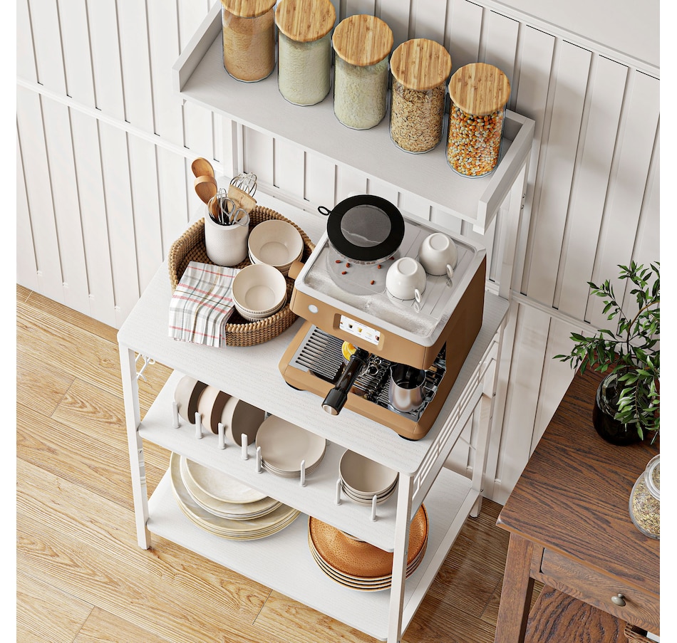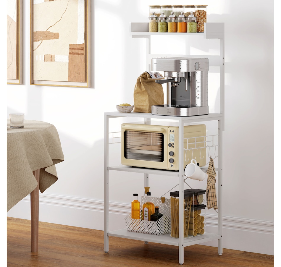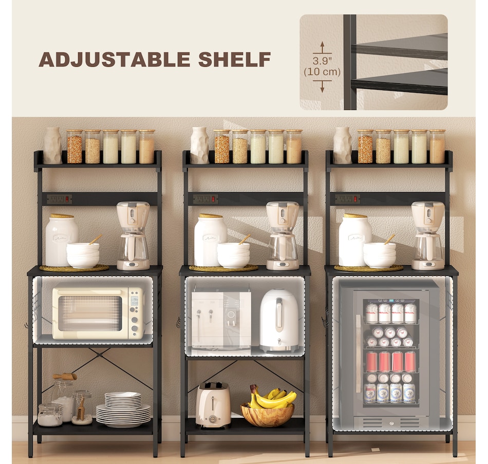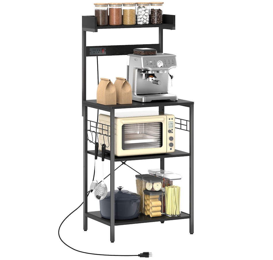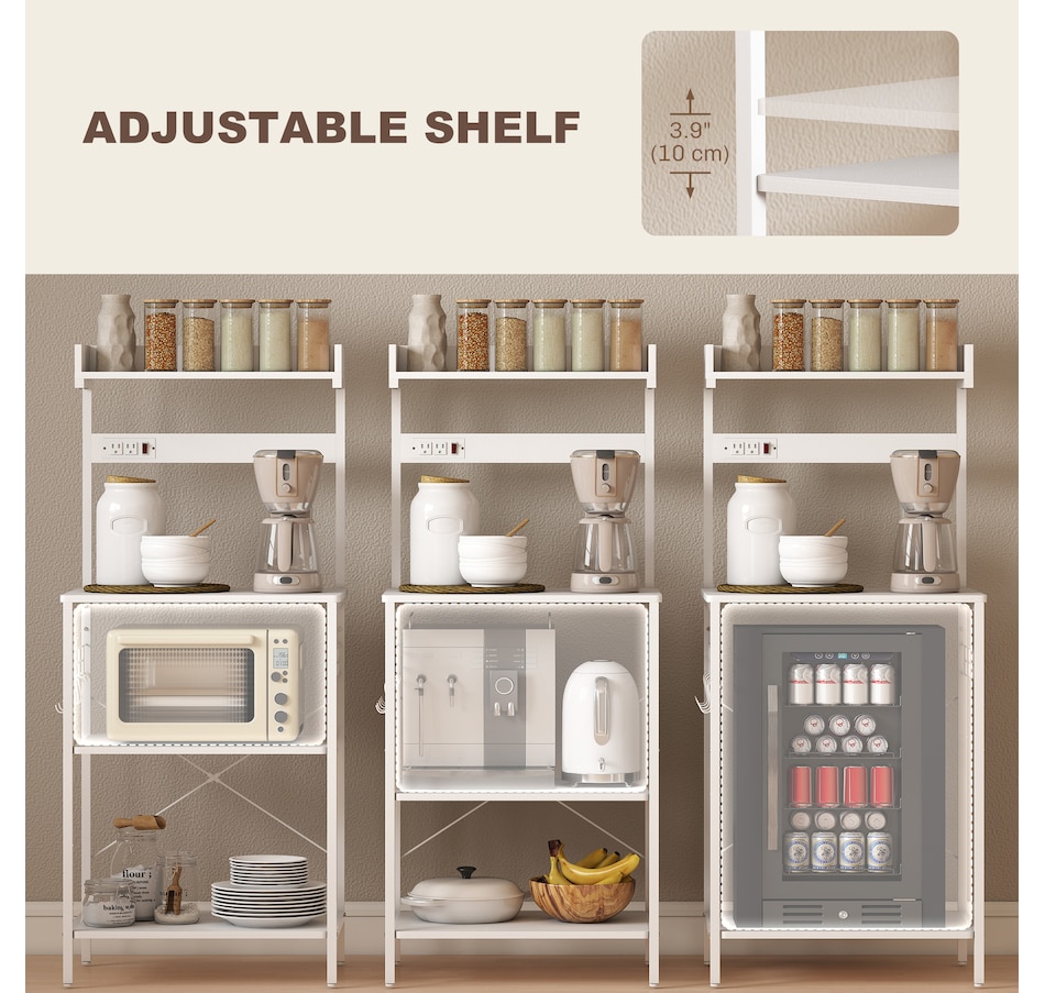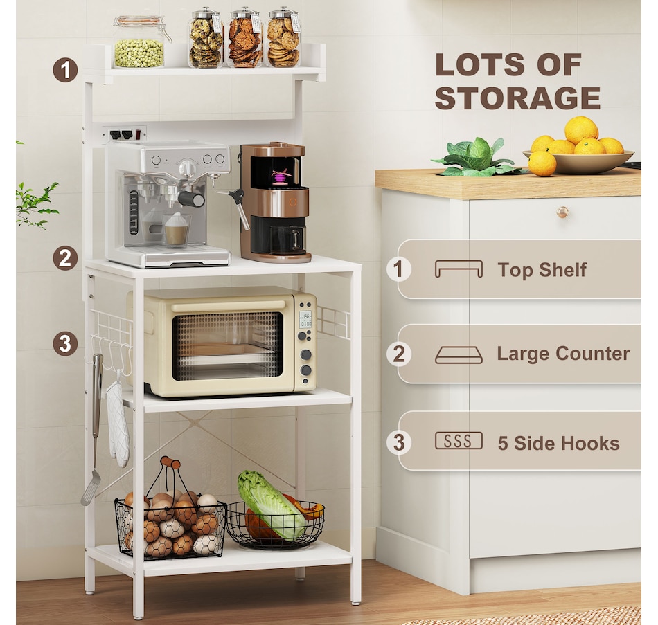 Bakers Rack with Power Outlet, Adjustable Shelves, Microwave Stand