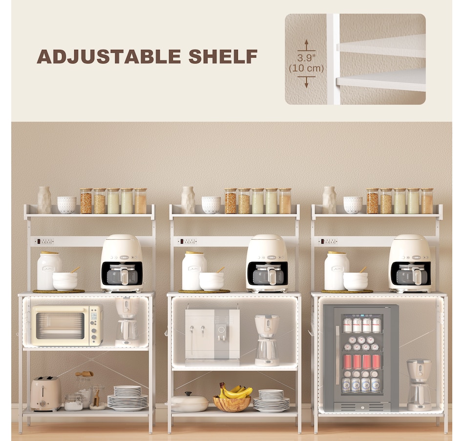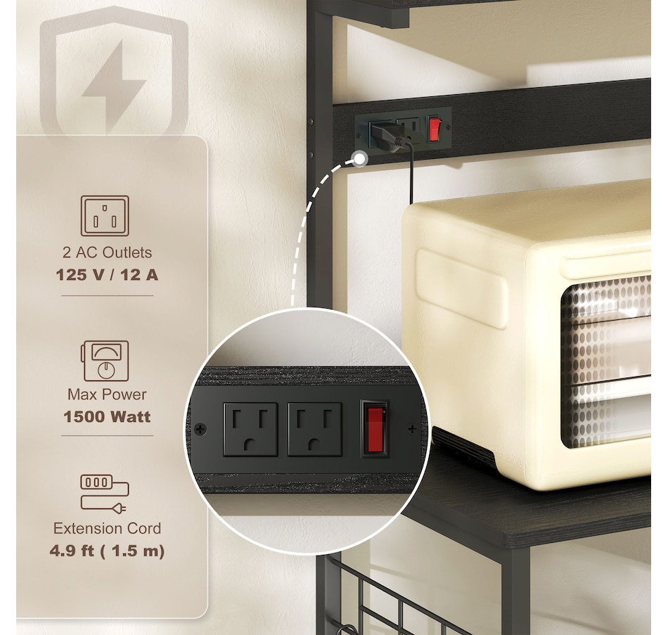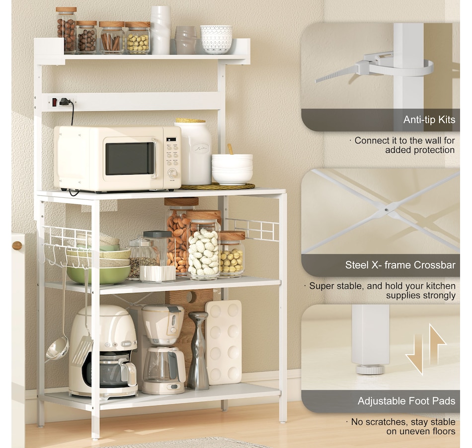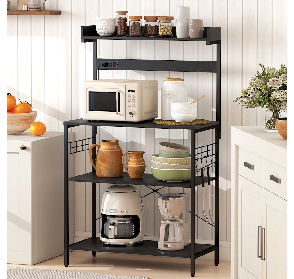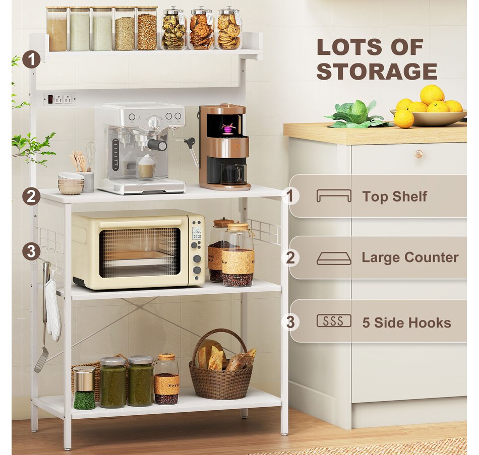 Bakers Rack with Power Outlet, Adjustable Shelves, Microwave Stand