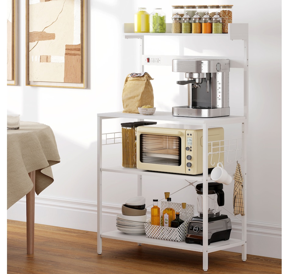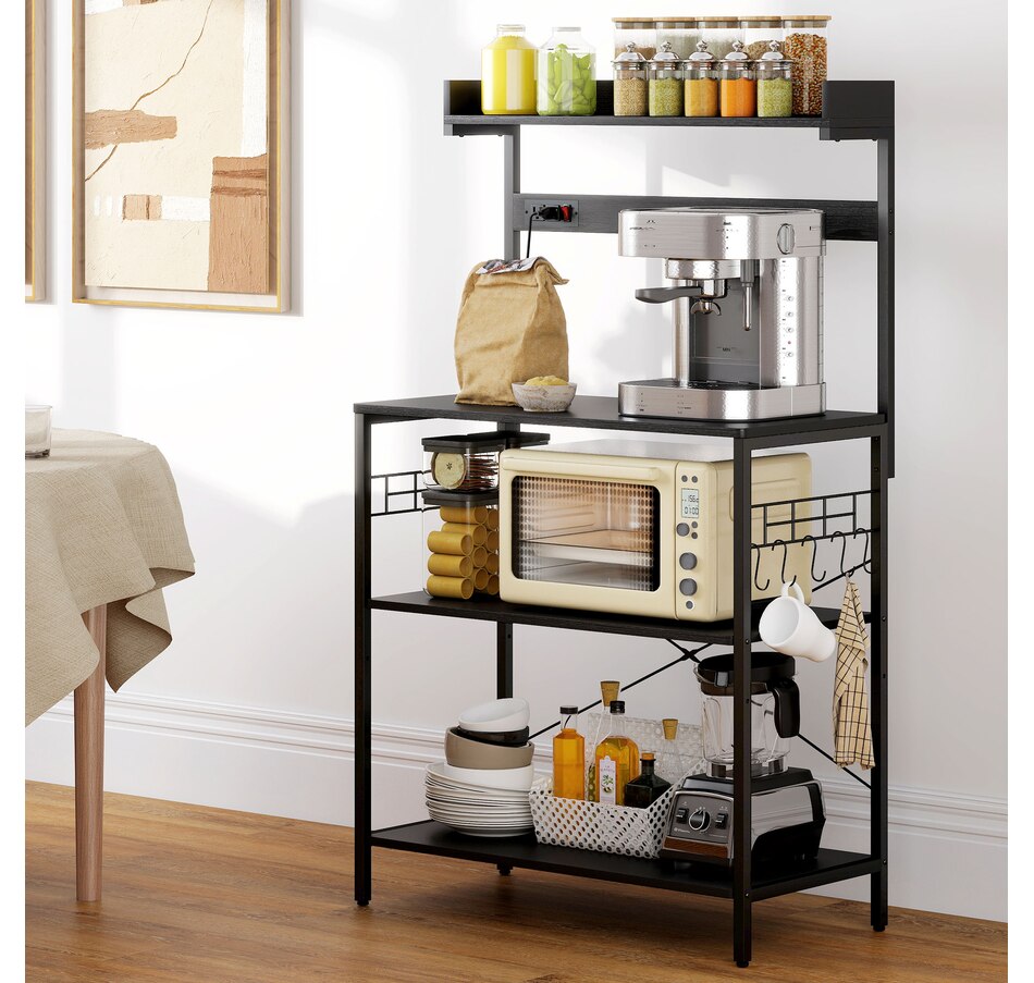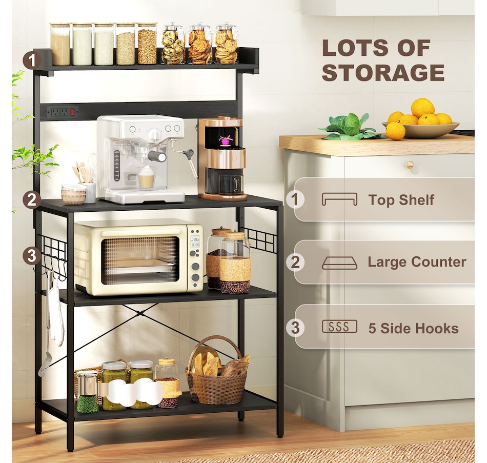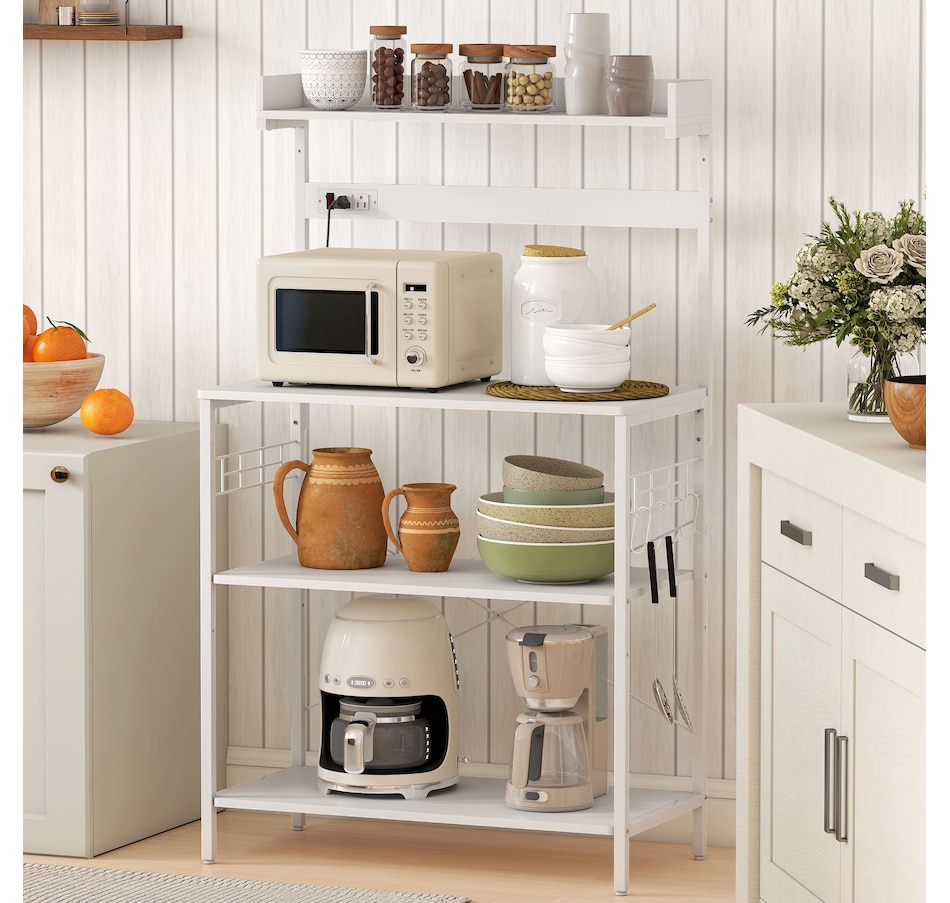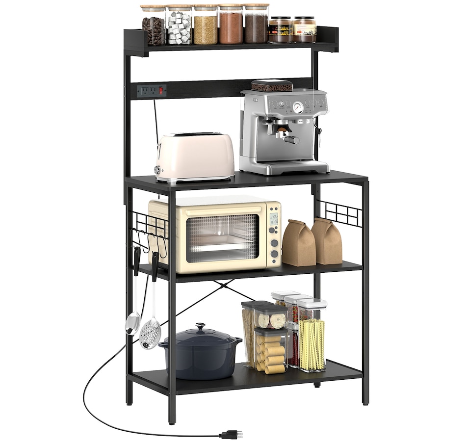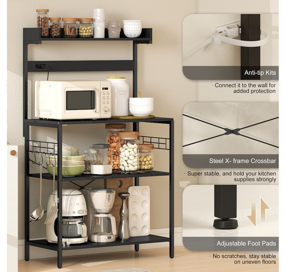 Bakers Rack with Power Outlet, Adjustable Shelves, Microwave Stand
