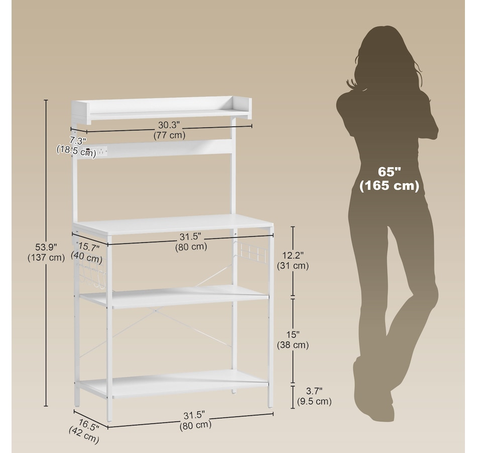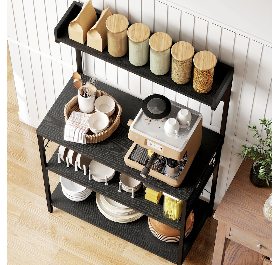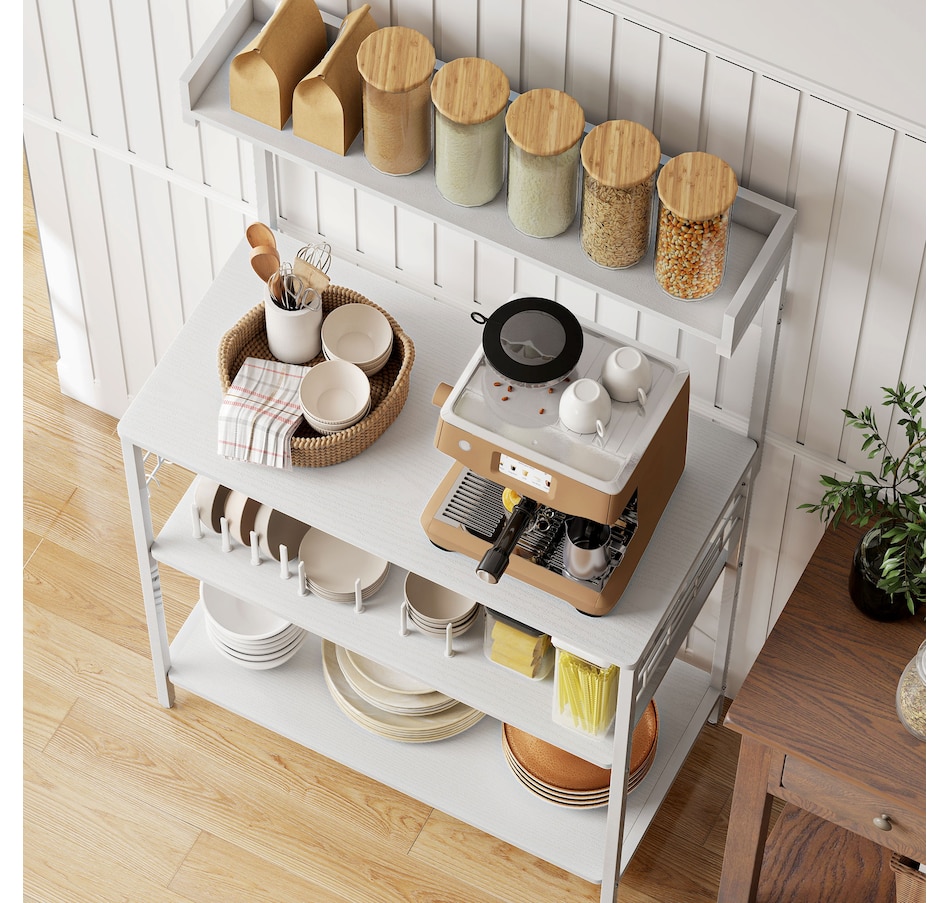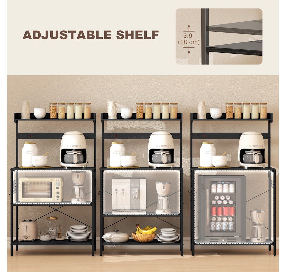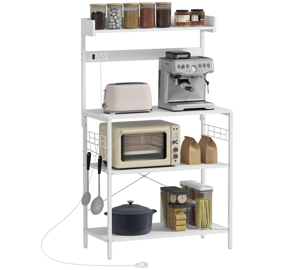 Bakers Rack with Power Outlet, Adjustable Shelves, Microwave Stand