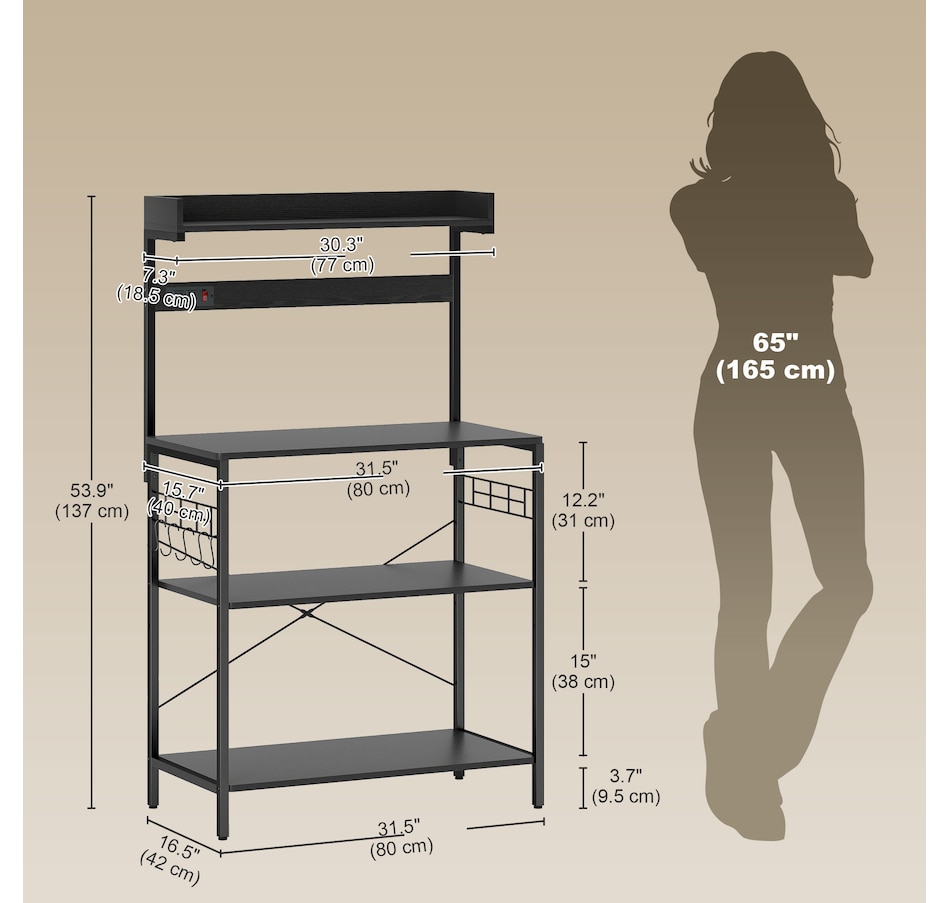 Discover your kitchen's untapped potential with our kitchen storage rack! This stylish and versatile wonder is essential for transforming any space into an organized culinary paradise. Master the art of hosting with the coffee bar setup, while the built-in power outlet ensures your favorite appliances are always ready for action. Boasting storage space, our industrial microwave stand helps declutter countertops, giving you room to unleash your inner chef.