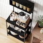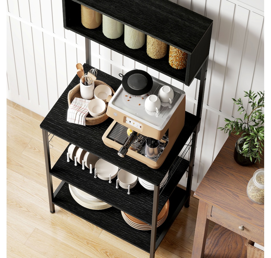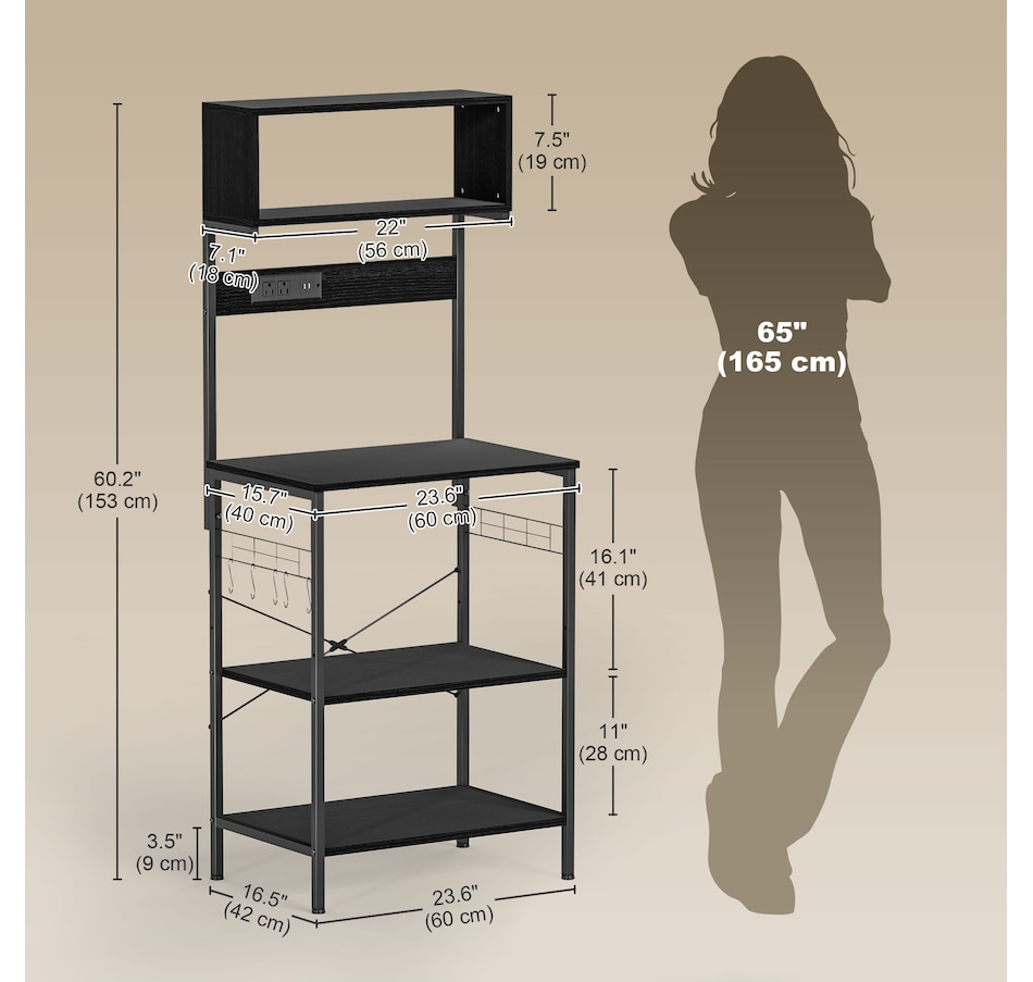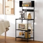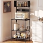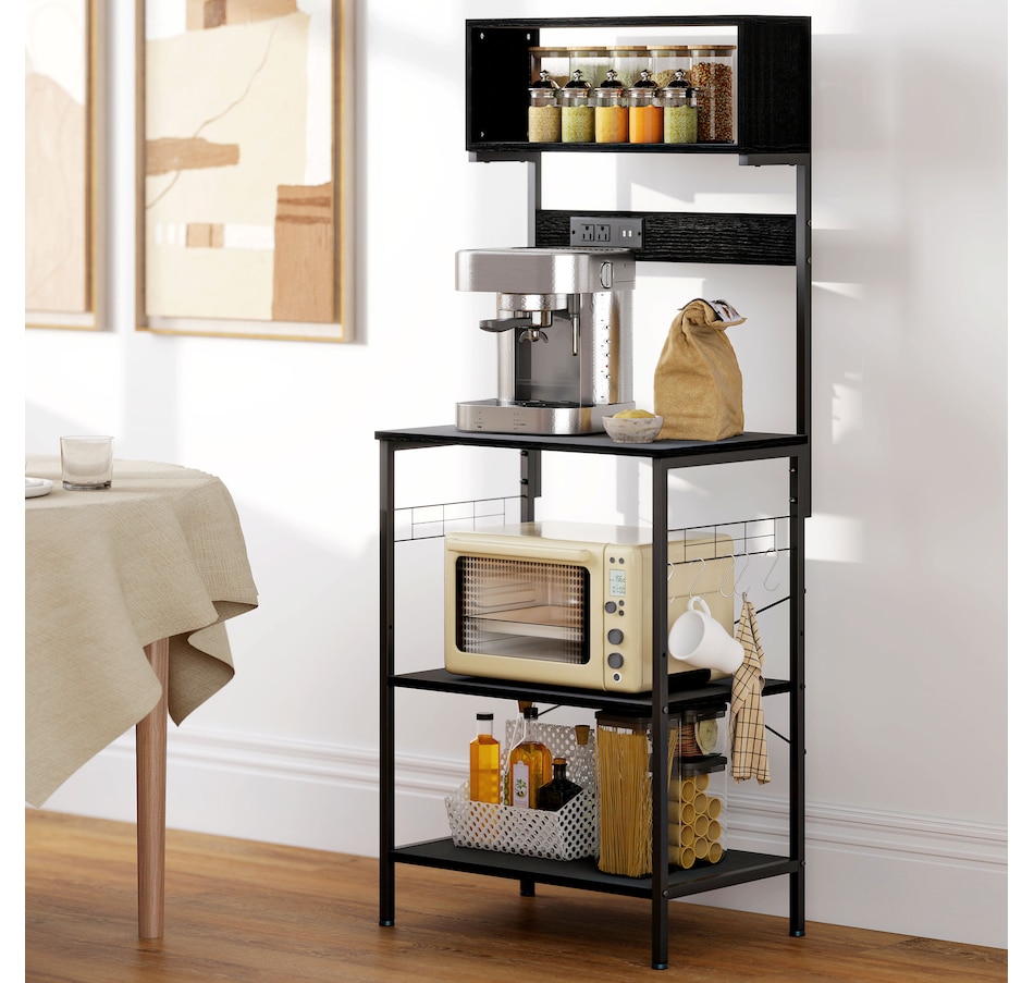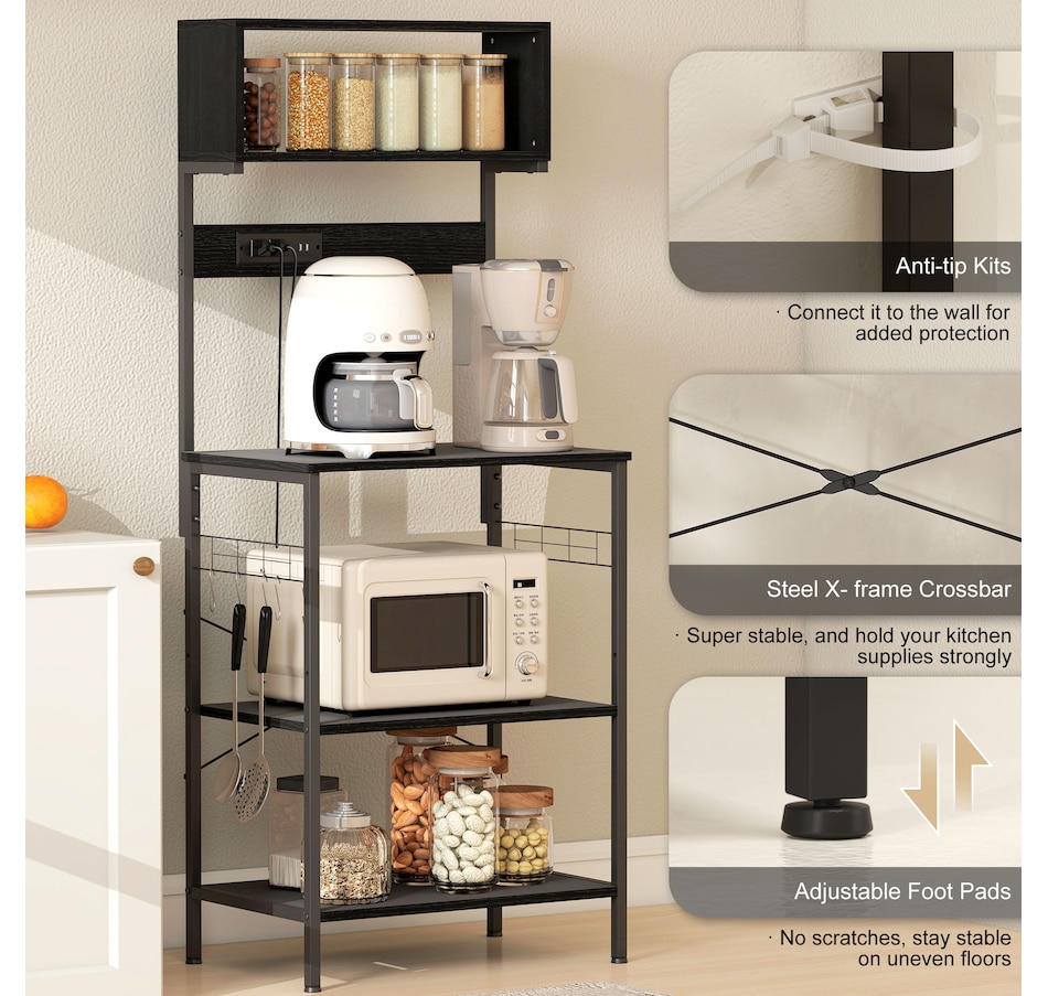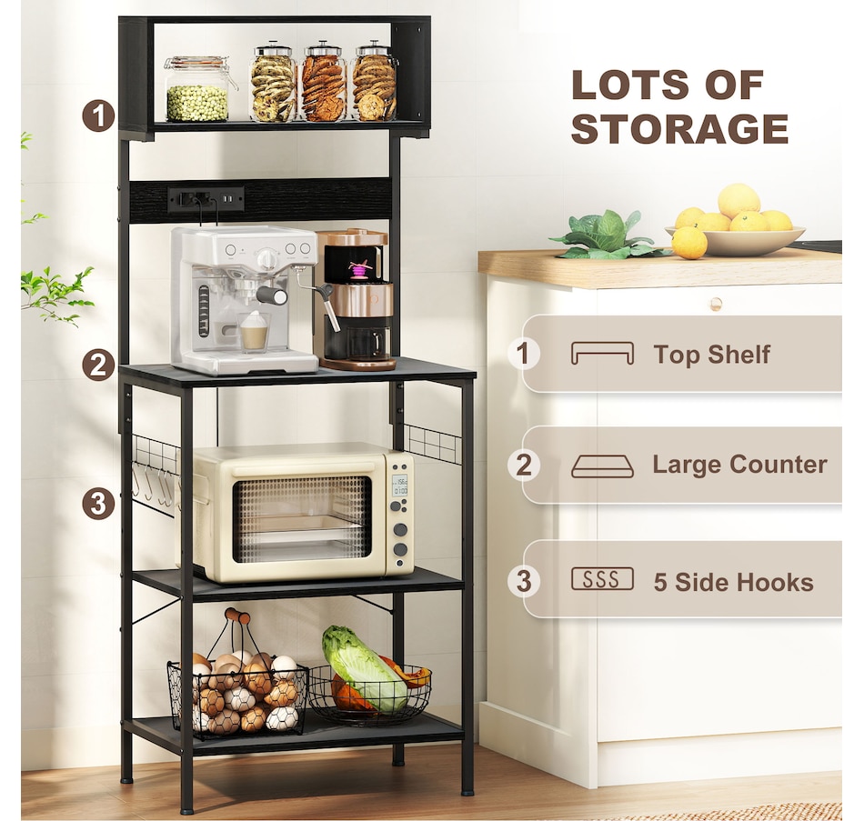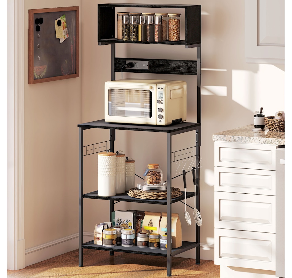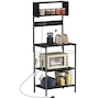 Baker's Rack with Power Outlet, USB Charger, Microwave Stand, Black