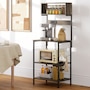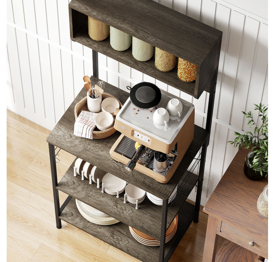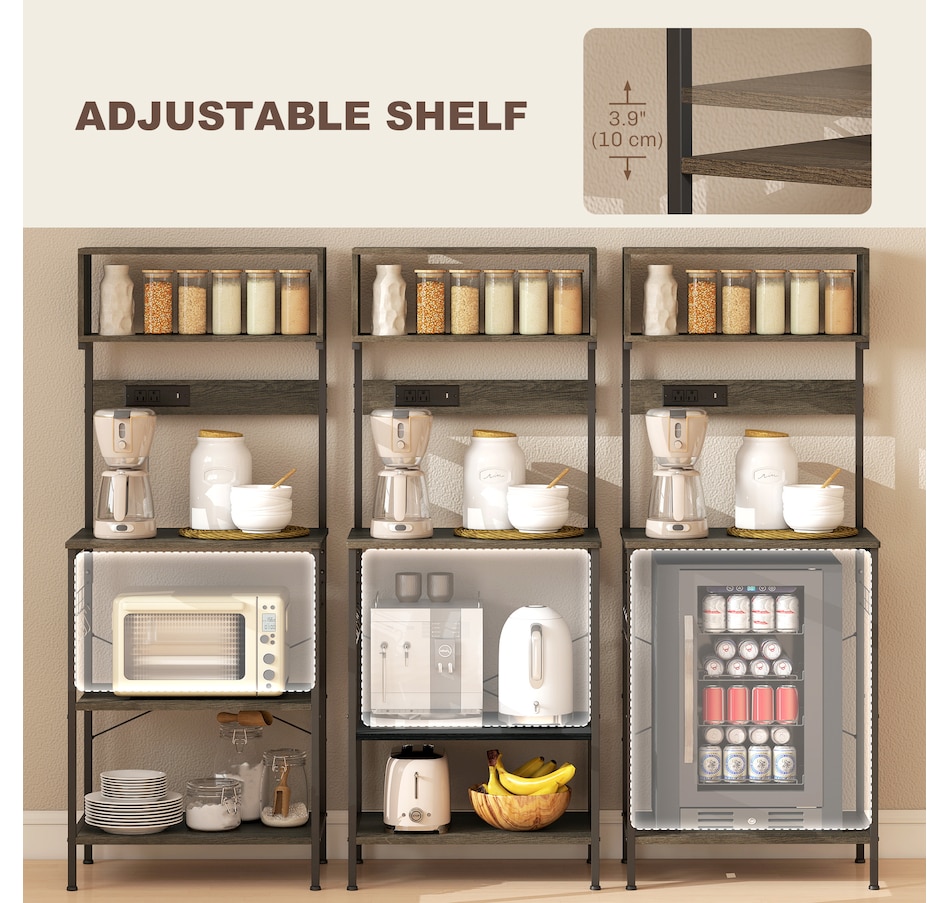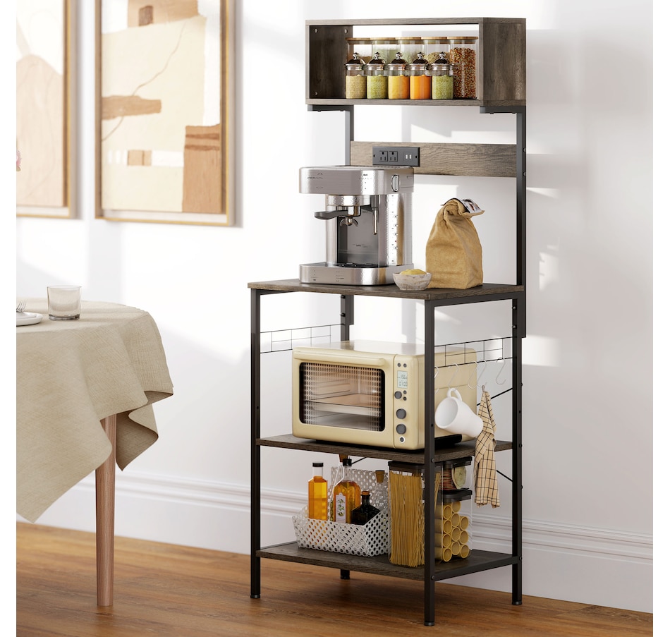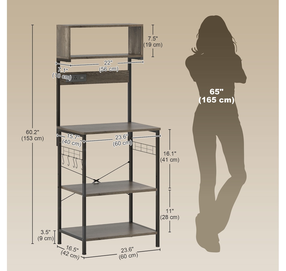 Baker's Rack with Power Outlet, USB Charger, Microwave Stand, Grey