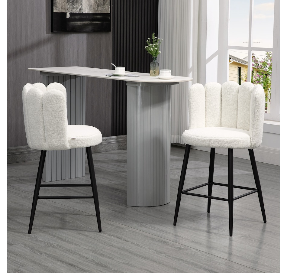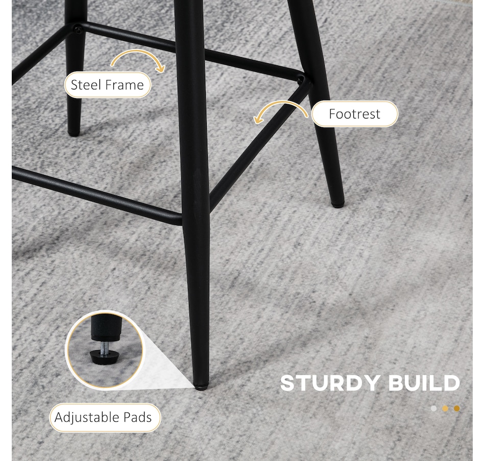 Maximize the space of your bar or dining area with these modern bar stools from HOMCOM. Whether you want to start the morning with a comfy breakfast or end the night with drinks, these sleek barstools suits your need. The luxurious design makes a distinct statement in any setting. The footrest and backrest help you to relax body posture. Enjoy your time and create a comfortable place for your guests with these tall bar stools.Features: