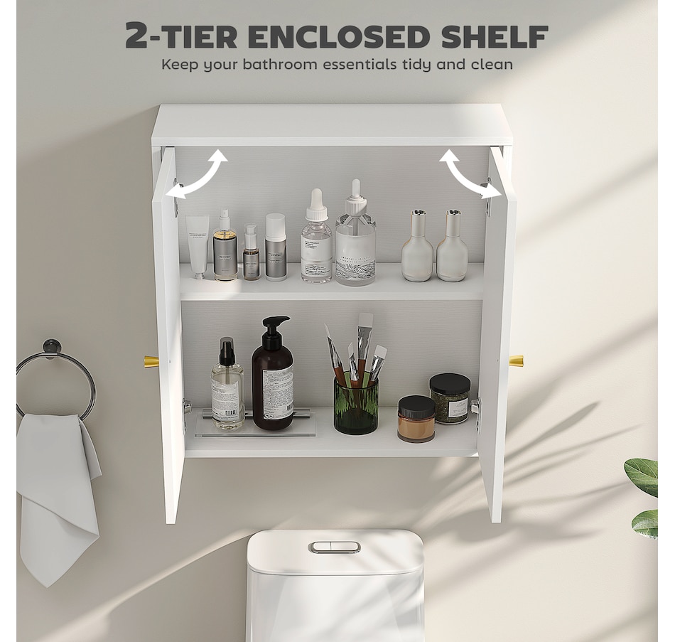 In the hustle of daily life, cluttered spaces can disrupt your peace. The bathroom wall cabinet from HOMCOM offers a solution, transforming your bathroom into a serene haven. With its double-layer storage, organizing essentials like soaps and towels becomes effortless, enhancing your daily routine. Crafted from quality MDF with an elegant white finish, this medicine cabinet not only elevates your decor but also ensures lasting comfort and reliability.Features:
