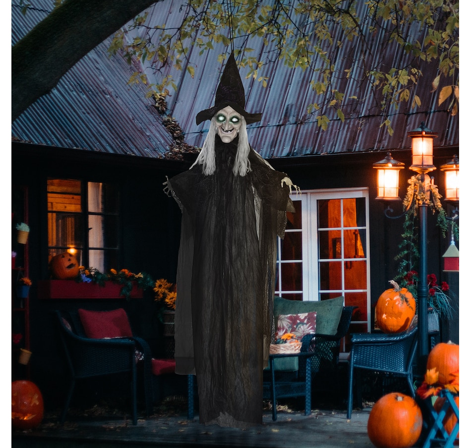 Black Witch Halloween Prop w/ Light Up Eyes for Party