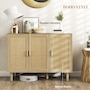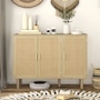 Discover the charm of the HOMCOM sideboard, where functionality meets flair. Featuring two cabinets with dual shelves, this storage cabinet effortlessly organizes everything from living room essentials to entryway odds and ends. The eye-catching rattan doors infuse a bohemian elegance into your space, making it a stylish addition to any living room, or hallway.Features: