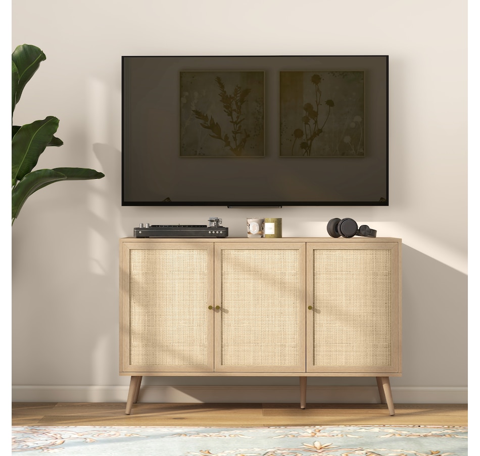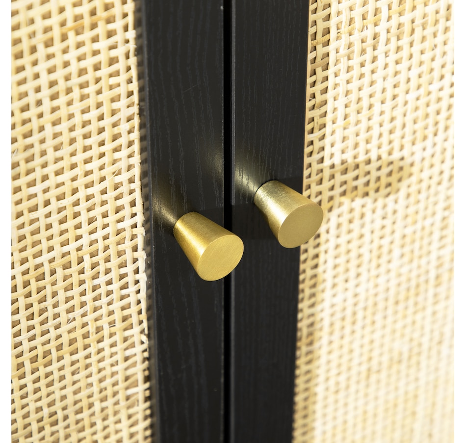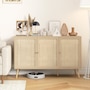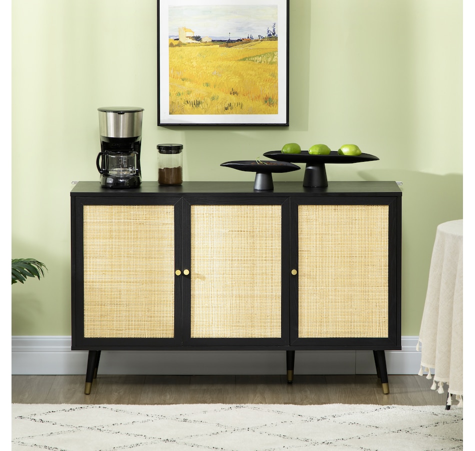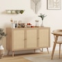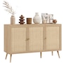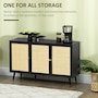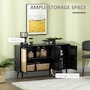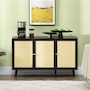 Boho Sideboard Buffet Cabinet with Decorative Rattan Doors, Black