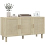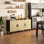 Boho Sideboard, Coffee Bar Cabinet with Rattan Doors, Black