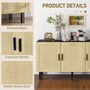 Are you looking for a valuable and elegant cabinet for your home? This HOMCOM buffet cabinet with storage features woven rattan wicker doors, adding a unique touch to any decor. Suitable for kitchens and dining rooms, it offers ample storage with three-level adjustable shelves. Crafted from particleboard with a melamine surface, it brings both elegance and practicality to your space.Features: